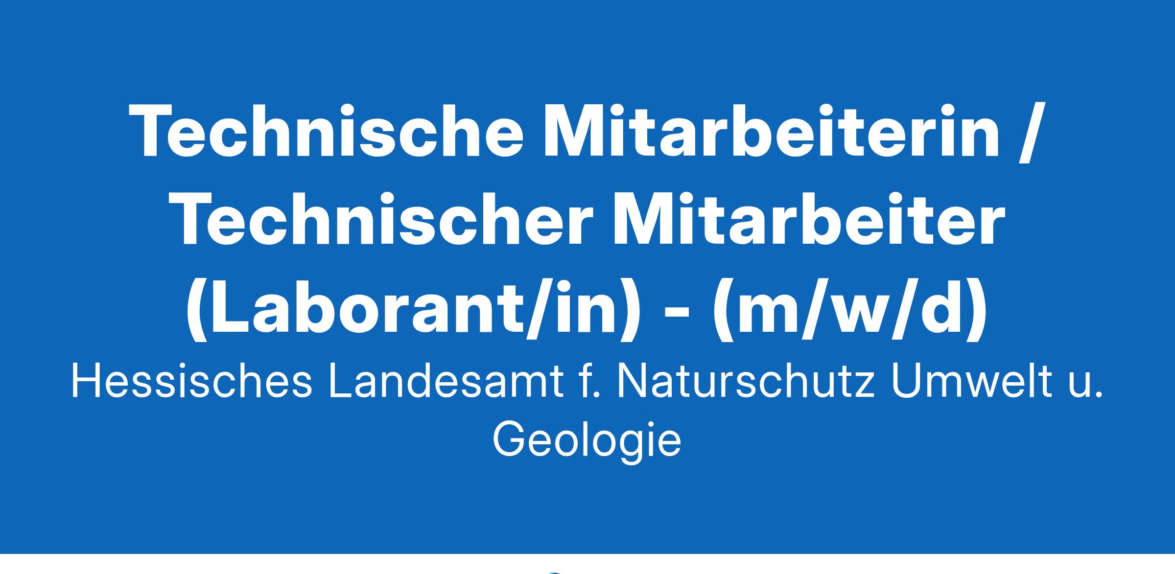 eine vergleichbare akademische Ausbildung (Bachelor of Science) Kenntnisse der Verfahren zur Qualitätssicherung und der einschlägigen Normen Hohe Teamfähigkeit, Eigeninitiative, eine selbstständige Arbeitsweise sowie gute kommunikative Fähigkeiten Sehr gute Deutschkenntnisse in Wort und Schrift Eignung zum Tragen von Lasten von bis zu 15 kg Gesundheitliche Eignung für die Tätigkeit in Strahlenschutzbereichen Von Vorteil sind Kenntnisse im Umgang mit Datenerfassungssystemen sowie Laborinformationssystemen oder Datenbanksystemen Kenntnisse der Strahlenschutzmesstechnik, insbesondere Messprinzipien Kenntnisse über nasschemische Verfahren und Erfahrung mit diesen Grundlegende Kenntnisse der Radioaktivität und Kernphysik Kenntnisse der Strahlenschutzverordnung, der mobilen Strahlenschutzmesstechnik und zum Verhalten in fremden Anlagen Erfahrungen im Herstellen von offenen radioaktiven Präparaten mit definierter Aktivität Grundlegende Kenntnisse der englischen Sprache Führerschein der Klasse B (alt:3) Über uns Das Hessische Landesamt für Naturschutz, Umwelt und Geologie (HLNUG) bietet Ihnen die Möglichkeit, aktiv an der Erhaltung und nachhaltigen Entwicklung der Natur und Umwelt in Hessen mitzuwirken: Wir untersuchen und überwachen Wasser, Boden, Luft, das Klima und die naturschutzrelevanten Lebensräume und Arten in Hessen. Wir sammeln und bewerten Daten zum Zustand und zur Veränderung der Umwelt. Wir machen diese Daten öffentlich zugänglich und erarbeiten Empfehlungen für die Politik. Als Teil unseres hochqualifizierten Teams tragen Sie aktiv dazu bei, Umweltbelastungen zu identifizieren und Maßnahmen zu deren Reduzierung zu entwickeln. Ihre Arbeit im HLNUG hat einen direkten Einfluss auf den Schutz von Hessens Natur und Umwelt und trägt somit maßgeblich zur Lebensqualität der Menschen in Hessen bei. Werden Sie Teil unseres Teams und setzen Sie sich mit uns für den Schutz unserer Umwelt und unserer natürlichen Ressourcen in Hessen ein - für eine lebenswerte Zukunft! Interesse geweckt? Dann freuen wir uns auf Ihre Bewerbung unter Angabe der Kennziffer A-6424-I5-MD-1 bis zum 16.02.2025 an das Personaldezernat (Z3) bewerbung-z3@hlnug.hessen.de Bitte fügen Sie folgende Unterlagen bei Anschreiben und Lebenslauf Qualifikationsnachweise Arbeitszeugnisse Anerkennung Ihres Abschlusses, falls dieser im Ausland erlangt wurde Nachweis einer evtl. Behinderung Geben Sie bitte bei Ihrer Bewerbung an, wie Sie auf uns aufmerksam geworden sind. Wir freuen uns darauf, Sie kennen zu lernen! Das verfahren Die Auswahl erfolgt nach den Kriterien Eignung, Befähigung und fachliche Leistung sowie einem Vorstellungsgespräch. Schwerbehinderte Menschen werden bei gleicher Eignung bevorzugt berücksichtigt. Unser Ziel ist die Gleichberechtigung aller Geschlechter und die Beseitigung von Unterrepräsentanz von Frauen in Bereichen, in denen sie unterrepräsentiert sind. Bewerbungen von Frauen sind besonders erwünscht. Eine Besetzung der Stelle in Teilzeit ist grundsätzlich möglich, jedoch muss sichergestellt sein, dass die Stelle in vollem Umfang besetzt wird. Wir begrüßen Bewerbungen unabhängig von Geschlecht, Nationalität, Behinderung, ethnischer und sozialer Herkunft, Religion/Weltanschauung, Alter sowie sexueller Orientierung und Identität. Haben Sie Fragen? Rufen Sie uns gerne an!