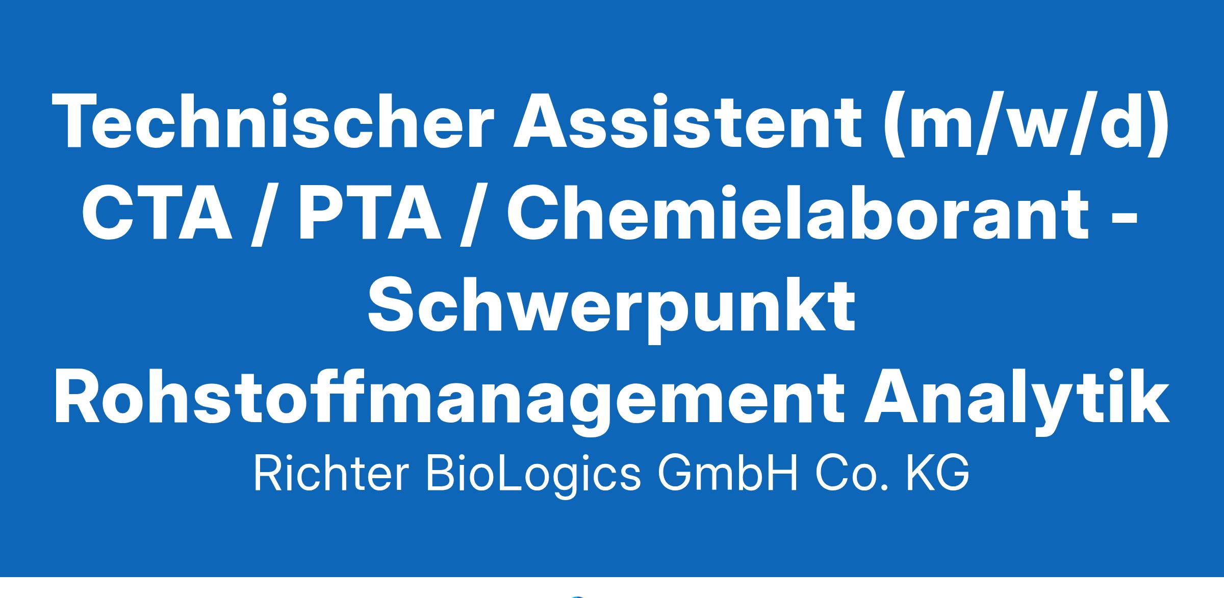 Sie haben eine erfolgreich abgeschlossene Ausbildung als Chemisch-technischer Assistent (m/w/d), Pharmazeutisch-technischer Assistent (m/w/d), Chemielaborant (m/w/d) oder vergleichbar