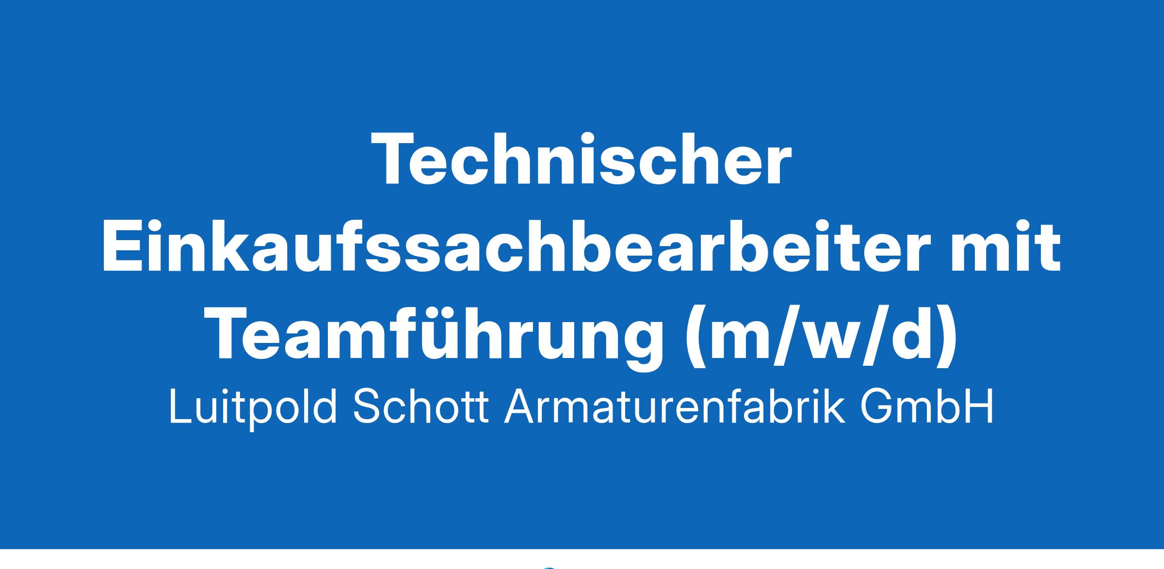verfolgen und in die Tat umsetzen.KontaktWir bieten Ihnen ein interessantes und abwechslungsreiches Aufgabengebiet und freuen uns auf Ihre Bewerbungsunterlagen per E-Mail mit Angabe des frühesten Eintrittstermins und Ihrer Gehaltsvorstellung. Wir bitten auch ausdrücklich um Bewerbungen von qualifizierten Interessenten über 50.HIER BEWERBENLuitpold Schott Armaturenfabrik GmbH