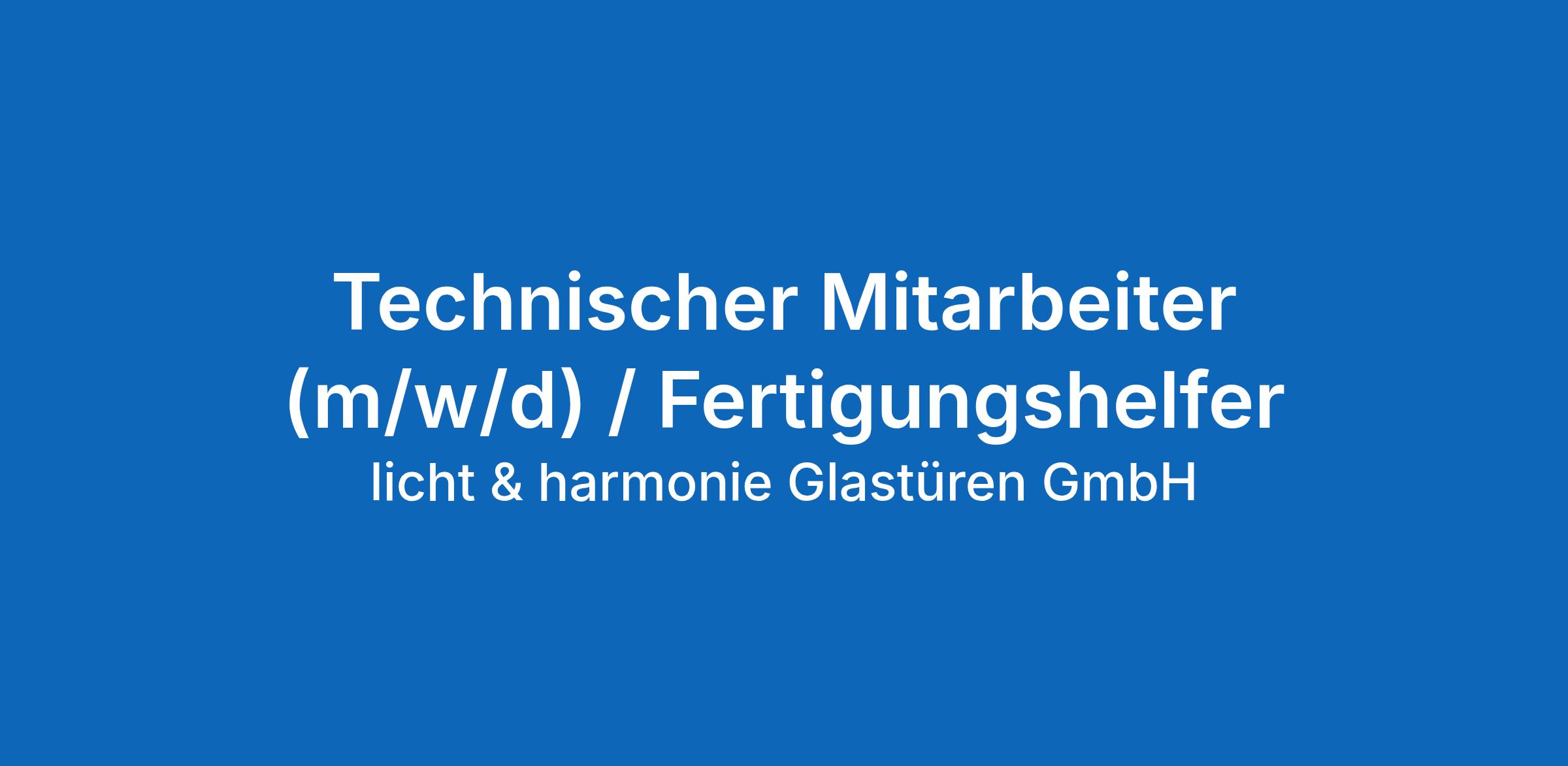 Technischer Mitarbeiter (m/w/d) / Fertigungshelfer