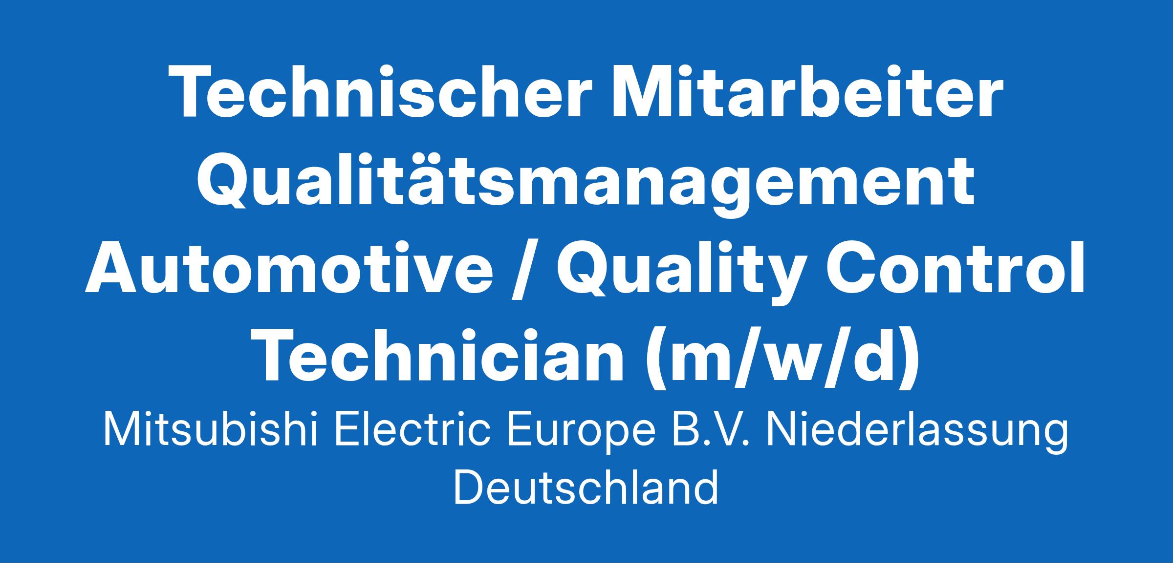 Technischer Mitarbeiter Qualitätsmanagement Automotive / Quality Control Technician (m/w/d)