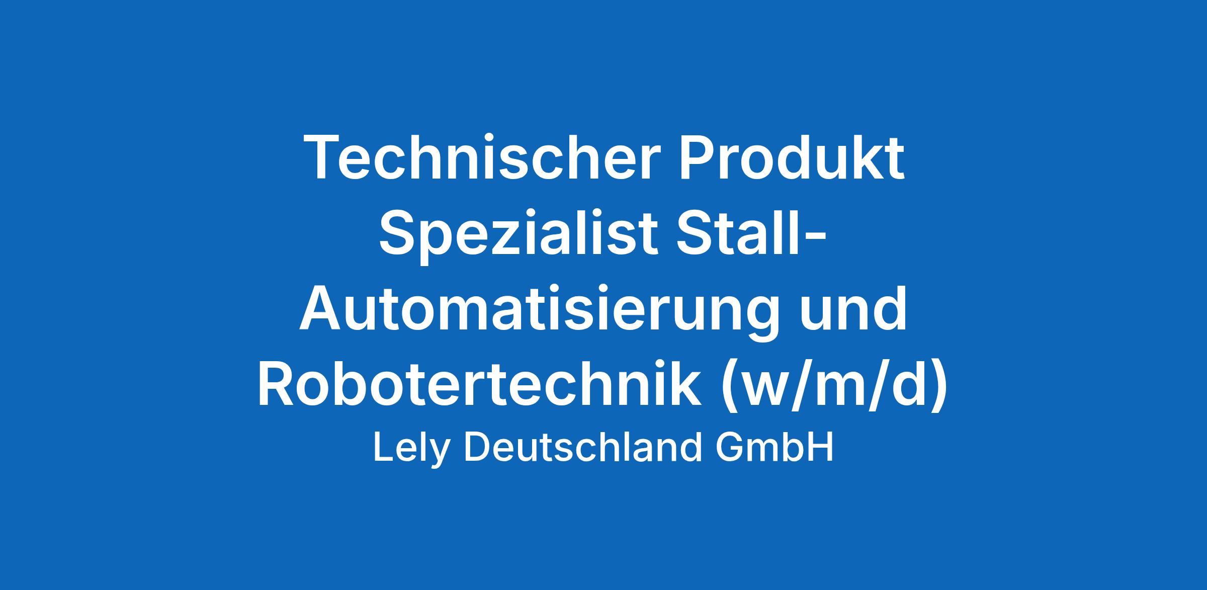 Ein technischer Produktspezialist für Stall-Automatisierung und Robotertechnik bei Lely Deutschland wird als technischer Spezialist und Ansprechpartner eines ausgewählten Produktportfolios für unsere Service- und Vertriebspartner und deren Betreuung eingesetzt.