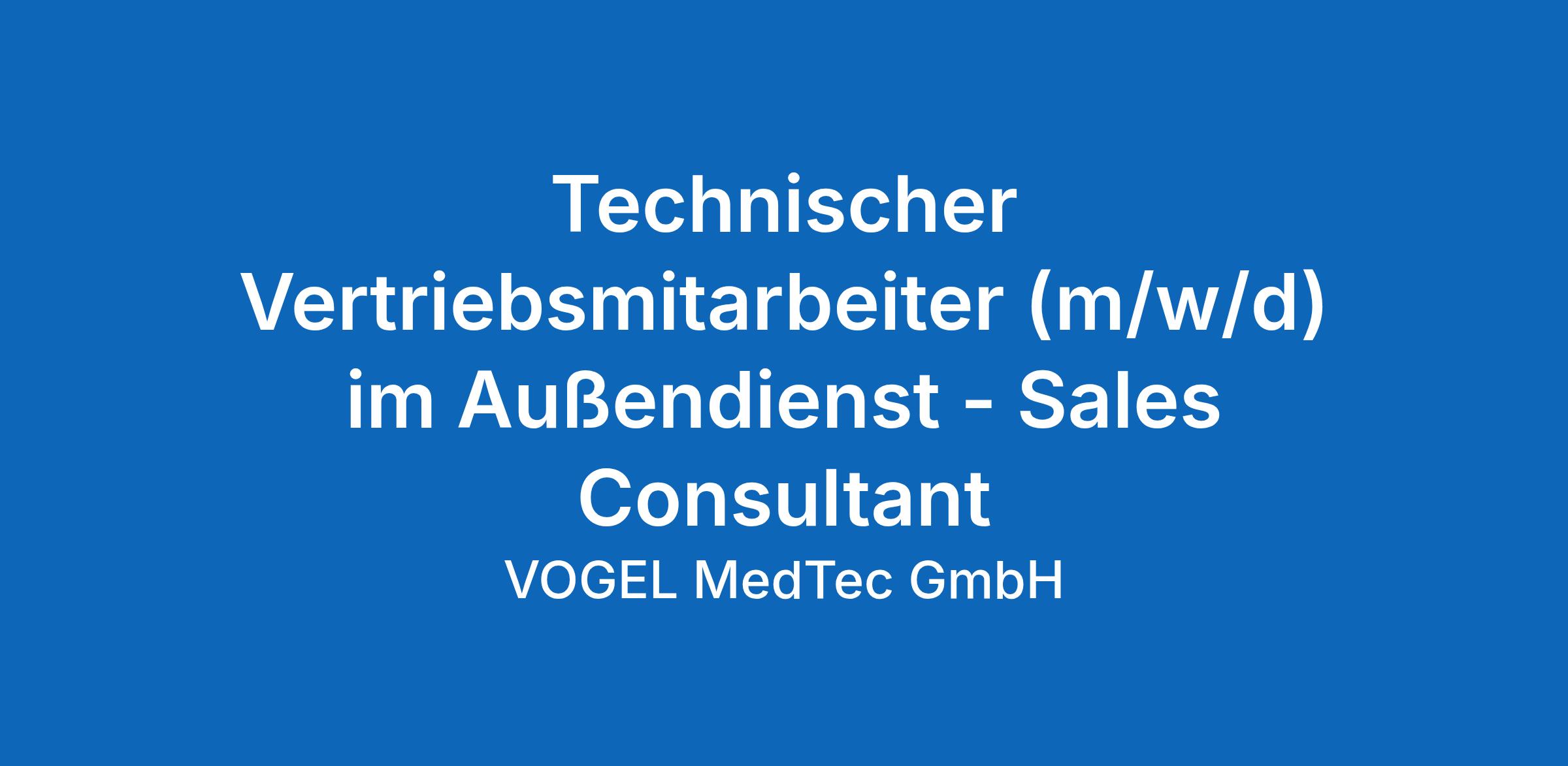 Technischer Vertriebsmitarbeiter (m/w/d) im Außendienst – Sales Consultant