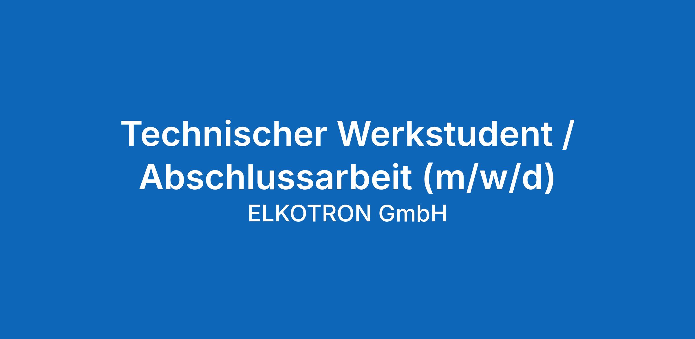 Technischer Werkstudent / Abschlussarbeit (m/w/d)