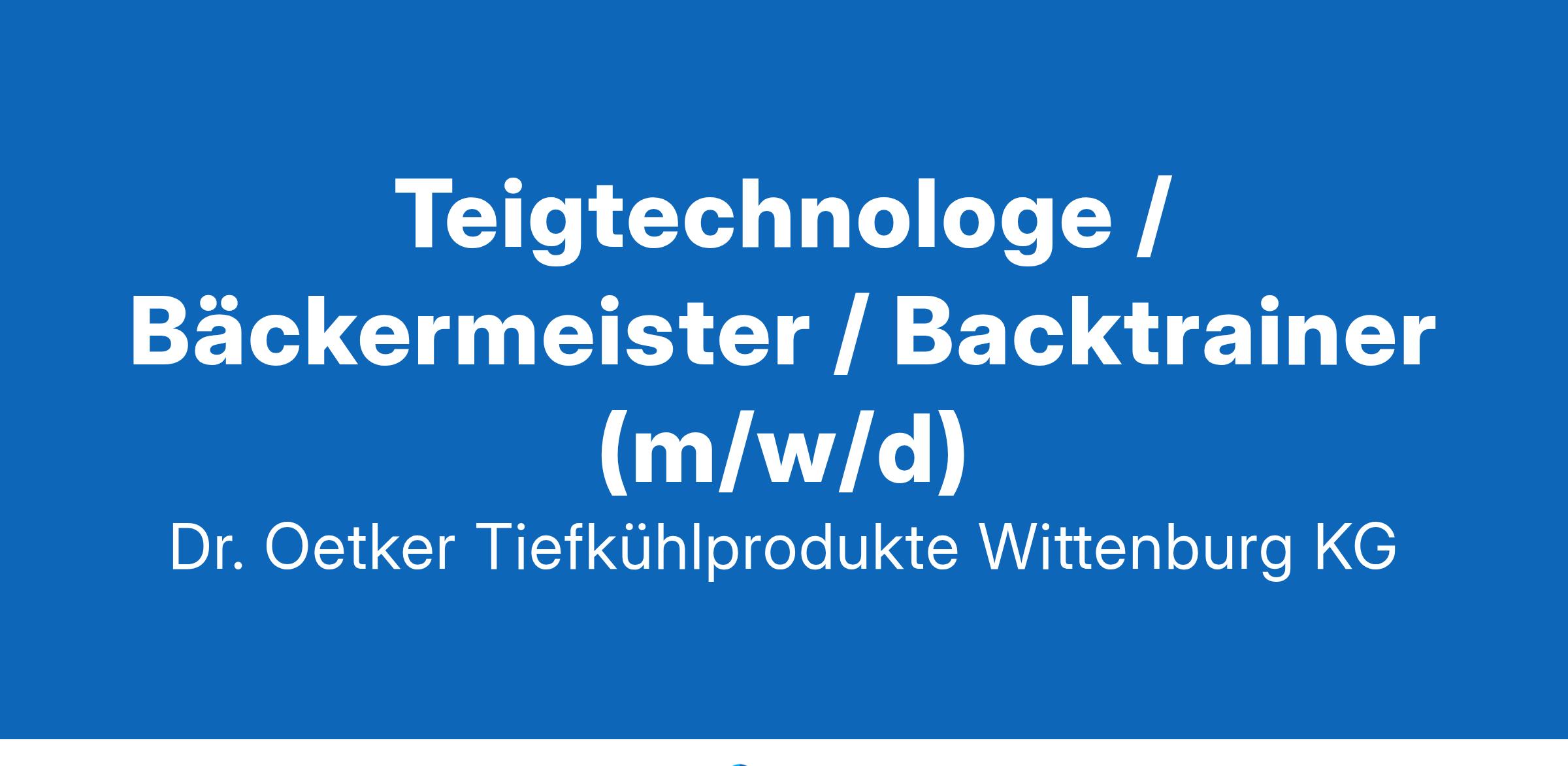 Teigtechnologe / Bäckermeister / Backtrainer (m/w/d)