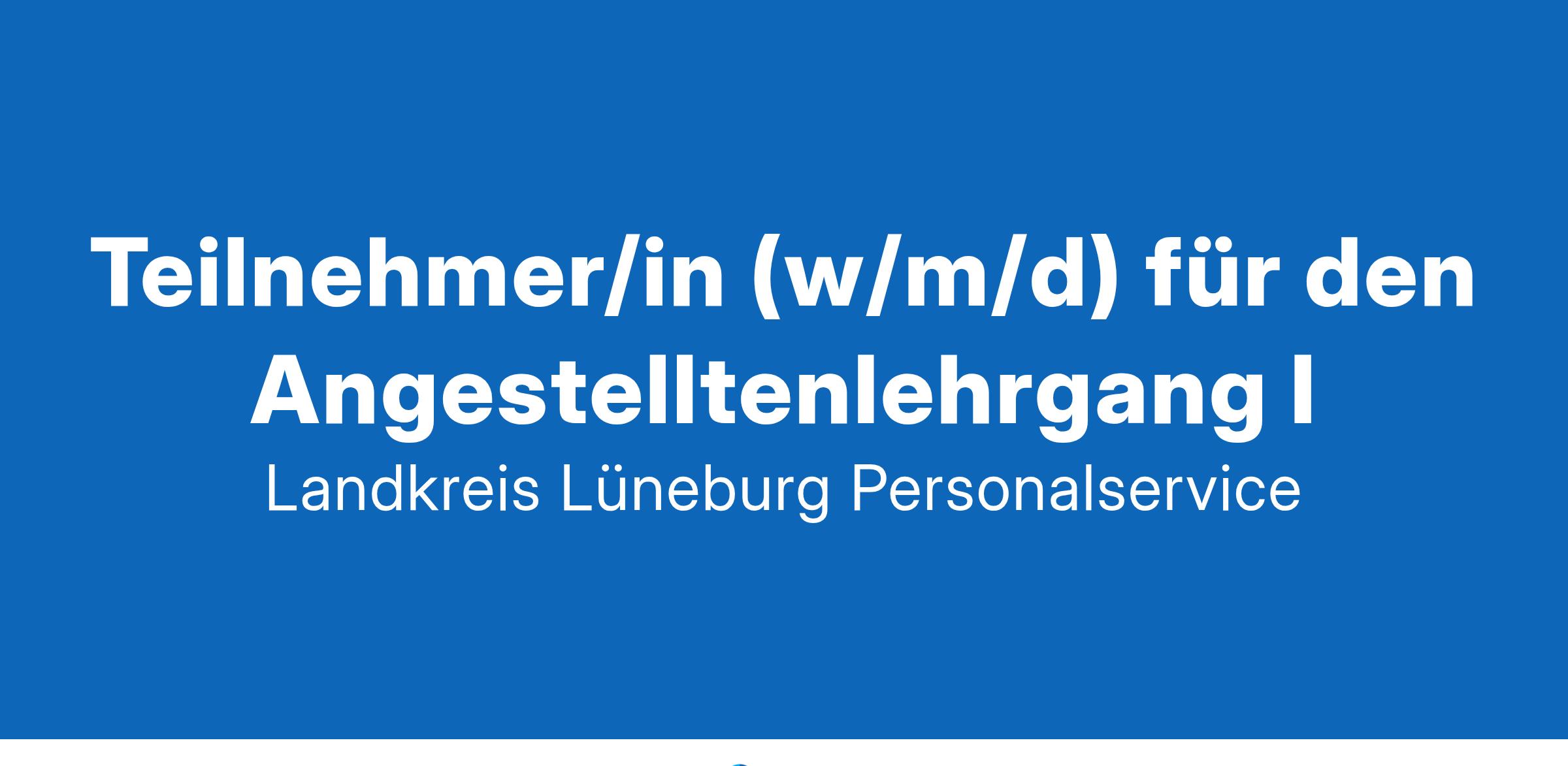 Teilnehmer/in (w/m/d) für den Angestelltenlehrgang I Ihr Weg in die Verwaltung beim Landkreis Lüneburg! Durch den Angestelltenlehrgang I erhalten Sie die notwendigen Grundlagen für eine künftige Sachbearbeitungstätigkeit beim Landkreis Lüneburg und bekommen die Bezeichnung “Verwaltungswirt/in (w/m/d)” verliehen. Vollzeit EG 05 befristet für
