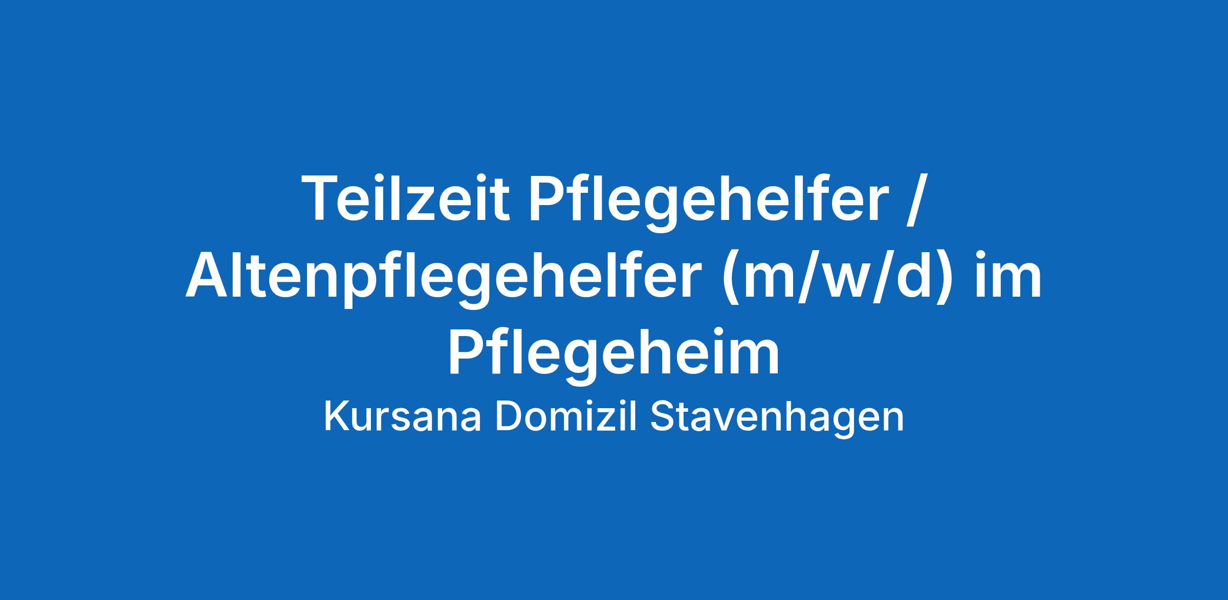 Teilzeit Pflegehelfer / Altenpflegehelfer (m/w/d) im Pflegeheim Stavenhagen