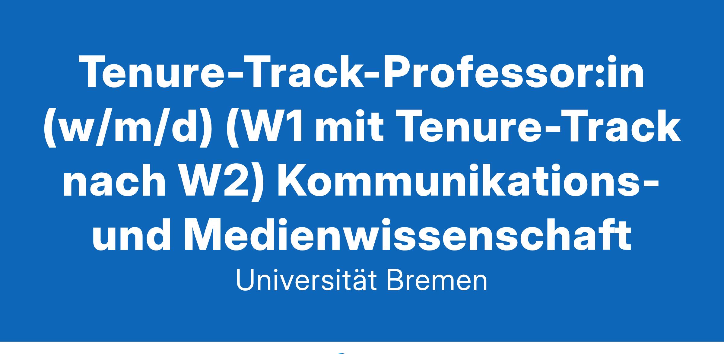 Zu den Lehraufgaben der Professur gehört die Mitwirkung an den Bachelor- und Master-Studiengängen der Kommunikations- und Medienwissenschaft gemäß der Lehrverpflichtungs- und Lehrnachweisverordnung (LVNV) der Universität Bremen. Die Bereitschaft, Veranstaltungen in deutscher und in englischer Sprache anzubieten, wird erwartet; hierfür fehlende Kenntnisse in einer der Sprachen sollen nach drei Jahren vorliegen, wobei die Universität dabei unterstützt. Wünschenswert ist ferner die Beteiligung am Konzept des »Forschenden Lernens«, der Einsatz mediengestützter Lernformen sowie die Bereitschaft zu hochschuldidaktischer Weiterbildung.