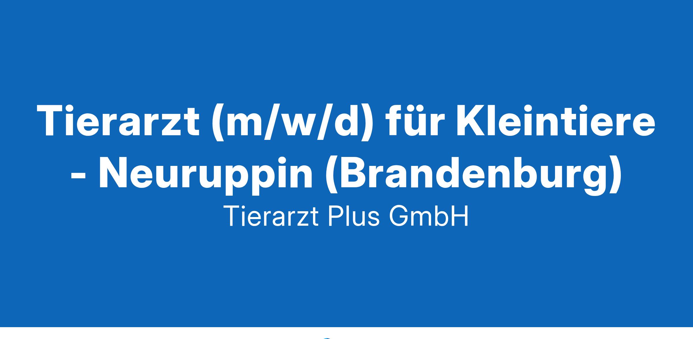 Tierarzt (m/w/d) für Kleintiere - Neuruppin (Brandenburg)Festanstellung, Voll- oder Teilzeit · NeuruppinEinleitungDu hast Lust in einem motivierten Team auf Augenhöhe zu arbeiten und dich stetig fachlich wie auch persönlich weiterzuentwickeln? Dann bist du in unserer Praxis genau richtig!Deine AufgabenAls berufserfahrene:r Tierärzt:in ergänzt du das Team professionell, gewissenhaft und zuverlässig in der Behandlung von unseren Patienten