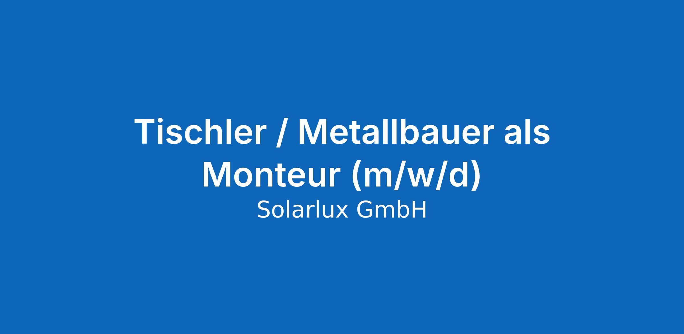 Tischler / Metallbauer als Monteur (m/w/d)