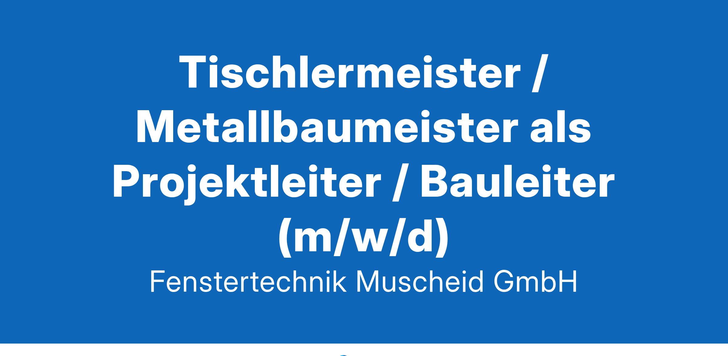 Die Fenstertechnik Muscheid GmbH hat sich verpflichtet, ihren Kunden hochwertige Lösungen in den Bereichen Fenster, Haustüren, Rollladen und Sonnenschutz zu bieten. Ihr Ziel ist es dabei, sowohl hohen Ansprüchen an das Design gerecht zu werden als auch gehobene Standards im Komfort, in der Sicherheit und im Umweltschutz zu erreichen. Wir sind ein dynamisches, motiviertes Team aus Machern, die vorankommen wollen. In familiärer Atmosphäre mit kurzen Wegen und flachen Hierarchien bekommen wir nahezu jede Herausforderung gemeistert. Dafür sind wir auf der Suche nach motivierten, loyalen Mitarbeitern (m/w/d), die mit uns an einem Strang ziehen. Wir freuen uns daher sehr, Ihnen die Chance bieten zu können, Teil unseres Teams zu werden als Tischlermeister / Metallbaumeister als Projektleiter / Bauleiter (m/w/d) auf freiberuflicher bzw. selbstständiger Basis Ihre Aufgaben: Eigenverantwortliche und termingerechte Projektplanungen für den Objekt- und auch den privaten Bereich Sie sind verantwortlich für die Konstruktion, Materialzusammenstellung, Montagedurchführung und Projektabrechnung sowie die komplette Projektüberwachung vor Ort Ihr Profil: Abgeschlossene Berufsausbildung als Tischler (m/w/d) oder Metallbauer (m/w/d) mit zusätzlicher Qualifikation als Meister (m/w/d) Fundierte Kenntnisse im Fenster- und Sonnenschutzbereich Grundlegende Kenntnisse im EDV-Bereich Wir bieten Ihnen: Leistungsgerechte objektbezogene Vergütung Offene, sich gegenseitig fördernde Kollegen Ein attraktives Arbeitsumfeld mit einer Ausstellungsfläche von circa 500 m2 Wollen Sie Teil unseres Teams werden? Dann freuen wir uns sehr auf Ihre Bewerbungsunterlagen, bevorzugt per E-Mail, an info@fenstertechnik-muscheid.de. Fenstertechnik Muscheid GmbH Dierdorfer Straße 499 56566 Neuwied-Gladbach Telefon: 02631 82477-0 Telefax: 02631 82477-50 www.fenstertechnik-muscheid.de