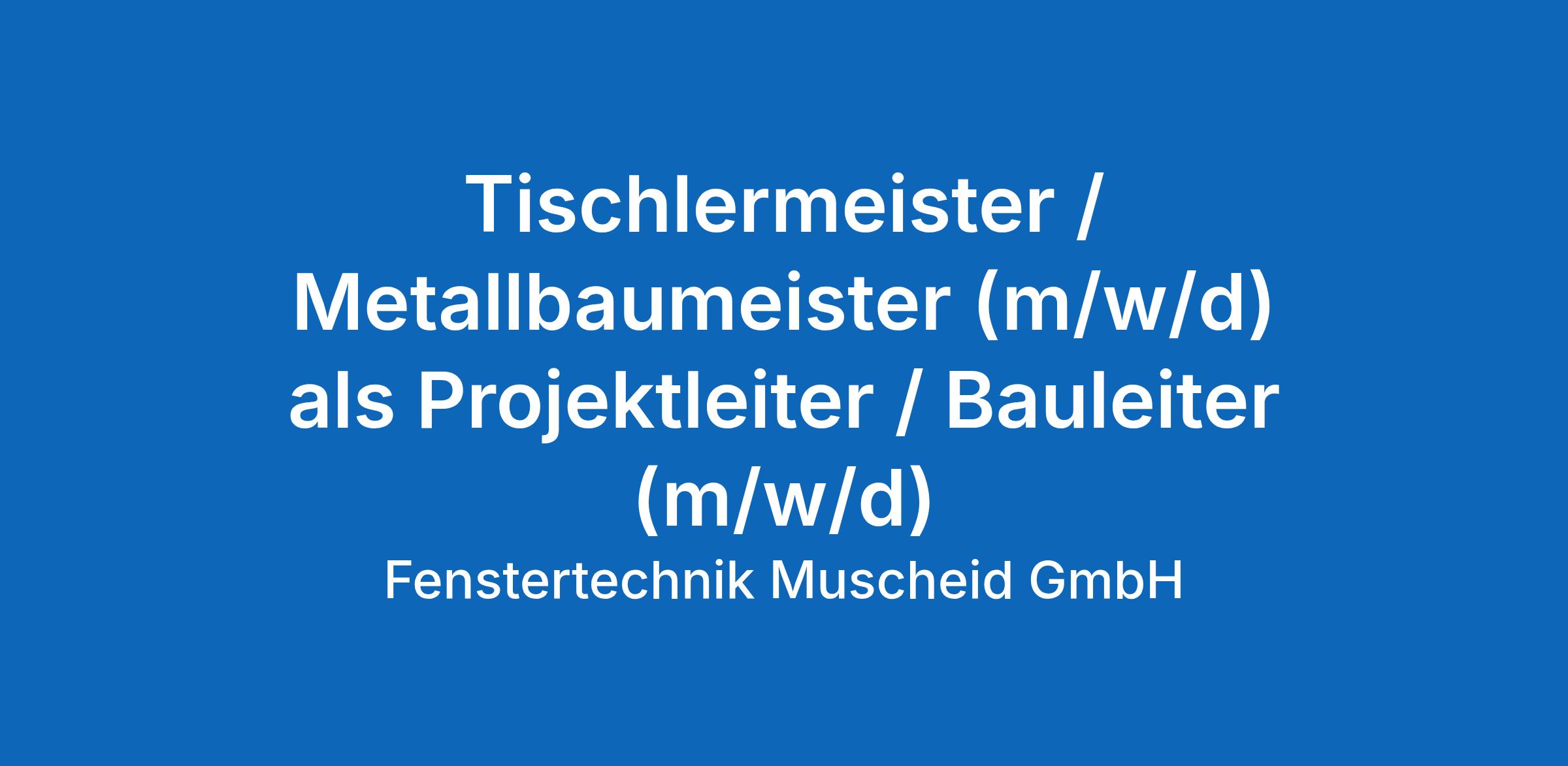 Tischlermeister / Metallbaumeister (m/w/d) als Projektleiter / Bauleiter (m/w/d)