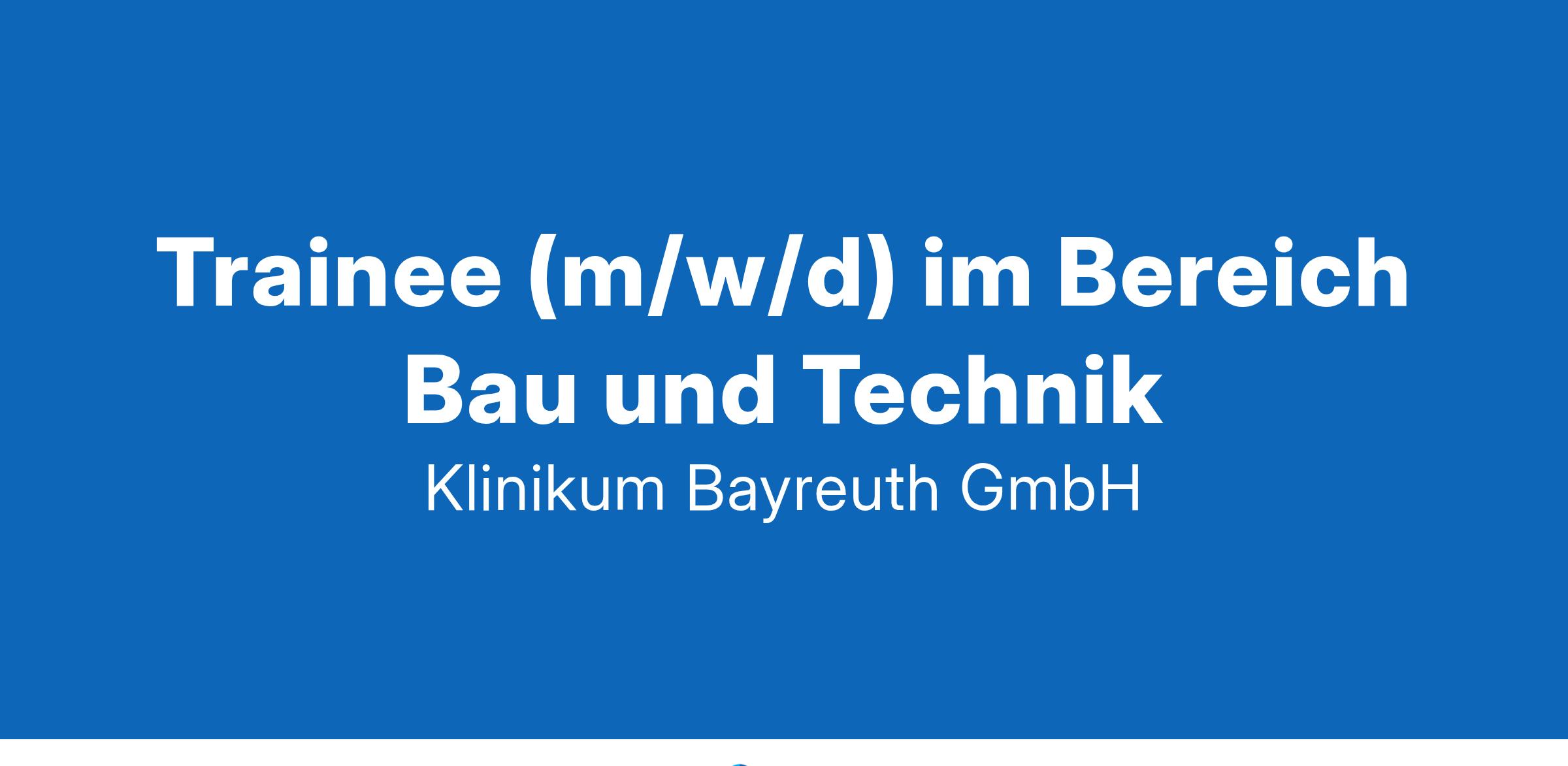 Die Klinikum Bayreuth GmbH erfüllt mit 28 Fachkliniken, 1.048 Betten und rund 3.500 Mitarbeitenden den Standard der Maximalversorgung und ist der führende Medizin-Dienstleister in Nordostoberfranken. Zudem ist die Klinikum Bayreuth GmbH mit ihren zwei Standorten in Bayreuth die überregional renommierte Anlaufstelle für Patientinnen und Patienten, die auf besonders hochwertige Versorgung Wert legen. Gemeinsam mit der Friedrich-Alexander-Universität Erlangen-Nürnberg, dem Universitätsklinikum Erlangen und der Universität Bayreuth steht die Klinikum Bayreuth GmbH für den Medizincampus Oberfranken. Hier absolvieren Medizin-Studierende den Klinischen Teil ihres Studiums. Damit bietet die Klinikum Bayreuth GmbH weit über die Region hinaus Diagnostik, Therapie, Forschung und Lehre auf universitärem Niveau und verbindet dies mit den Bedürfnissen und Anforderungen der Bevölkerung in Oberfranken nach einer umfassenden Gesundheitsversorgung. www.klinikum-bayreuth.deIhr ArbeitsbereichWir sind wie eine kleine Stadt - weil wir uns um Menschen, um unsere Patientinnen und Patienten bemühen. Wir sind ein tolles Team und einer der größten Arbeitgeber in der Region. Wir sind ein kommunal geführtes Krankenhaus, das seiner Verantwortung gerecht wird. Wir setzen auf flache Hierarchien und auf Menschen, die sich engagieren.Gerne steht Ihnen die kommissarische Geschäftsbereichsleitung Bau und Technik, Frau Sonja Pöhlmann unter der Telefonnummer 0921/400-2191 zur Verfügung.AnsprechpartnerDas bringen Sie mitSie haben ein erfolgreich abgeschlossenes Studium im Bereich Medizintechnik, Ingenieurwesen, Architektur, Facility Management oder eine erfolgreich abgeschlossene Ausbildung zum staatlich geprüften Techniker alternativ suchen wir Studien- bzw. Ausbildungsabsolventen, die kurz vor dem Abschluss des Studiums bzw. der Ausbildung in einem dieser Bereiche stehen.