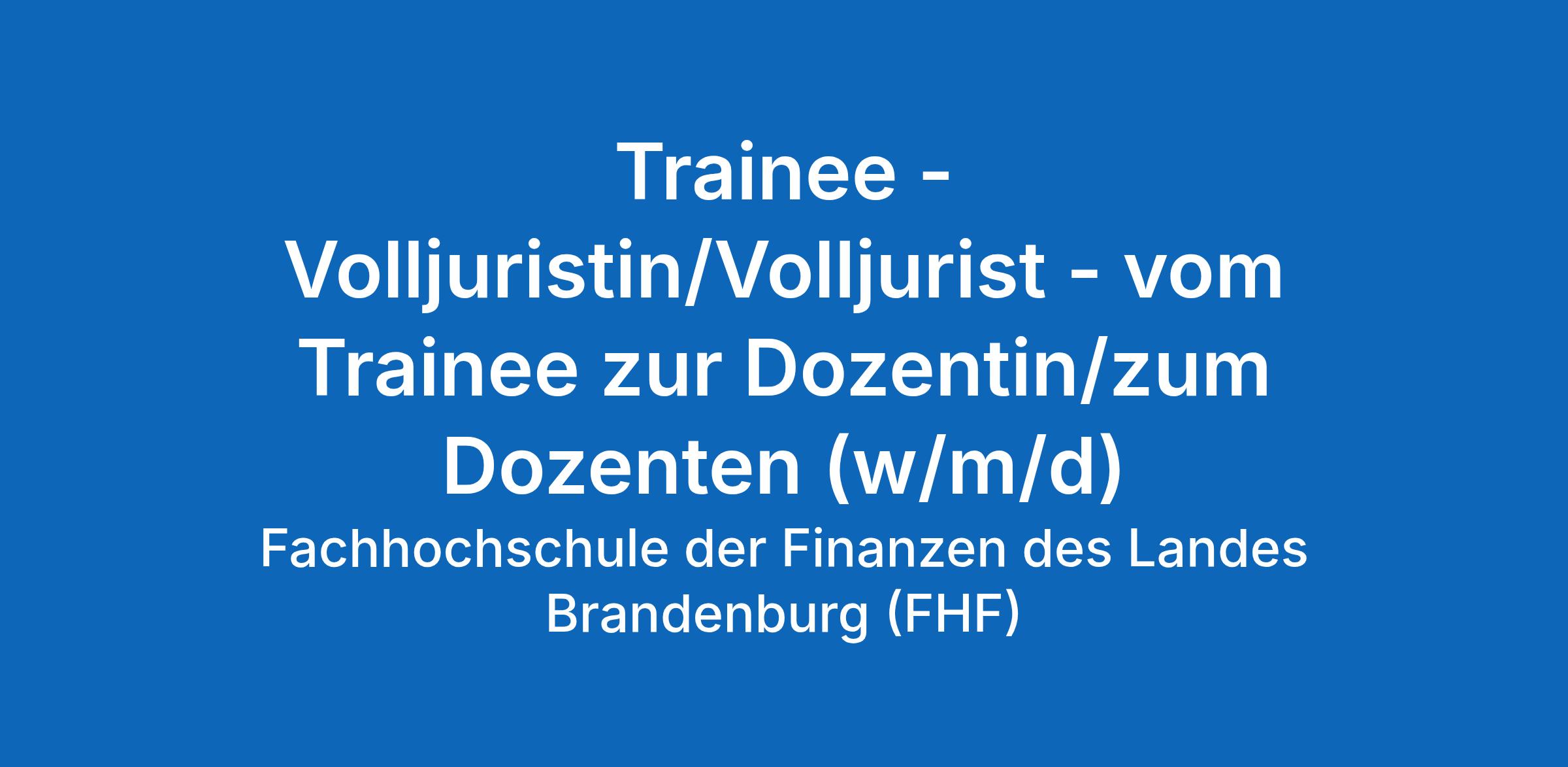 Trainee - Volljuristin/Volljurist - vom Trainee zur Dozentin/zum Dozenten (w/m/d)