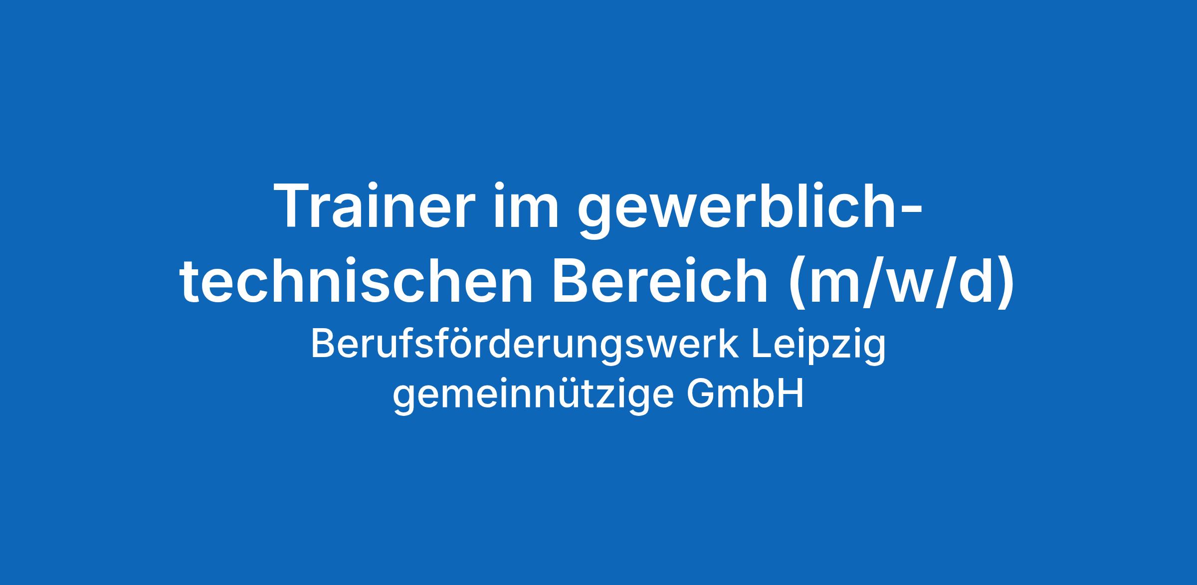 Das Berufsförderungswerk Leipzig sucht für das Berufliche Trainingszentrum in Leipzig zum nächstmöglichen Zeitpunkt einen