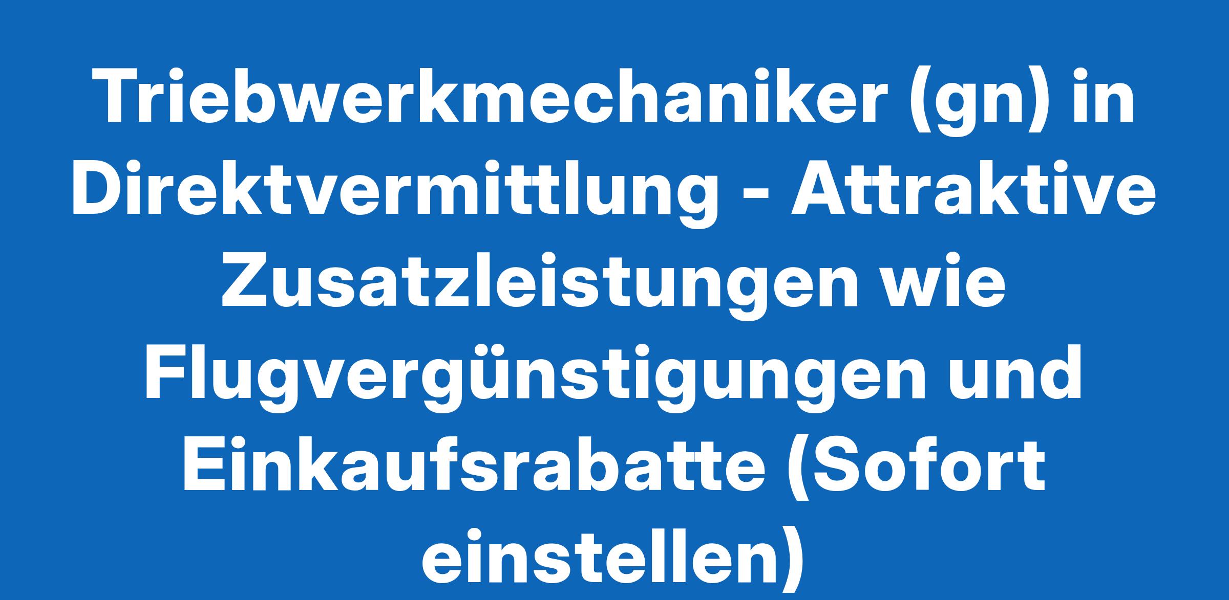 Triebwerkmechaniker (gn) in Direktvermittlung - Attraktive Zusatzleistungen wie Flugvergünstigungen und Einkaufsrabatte (Sofort einstellen)