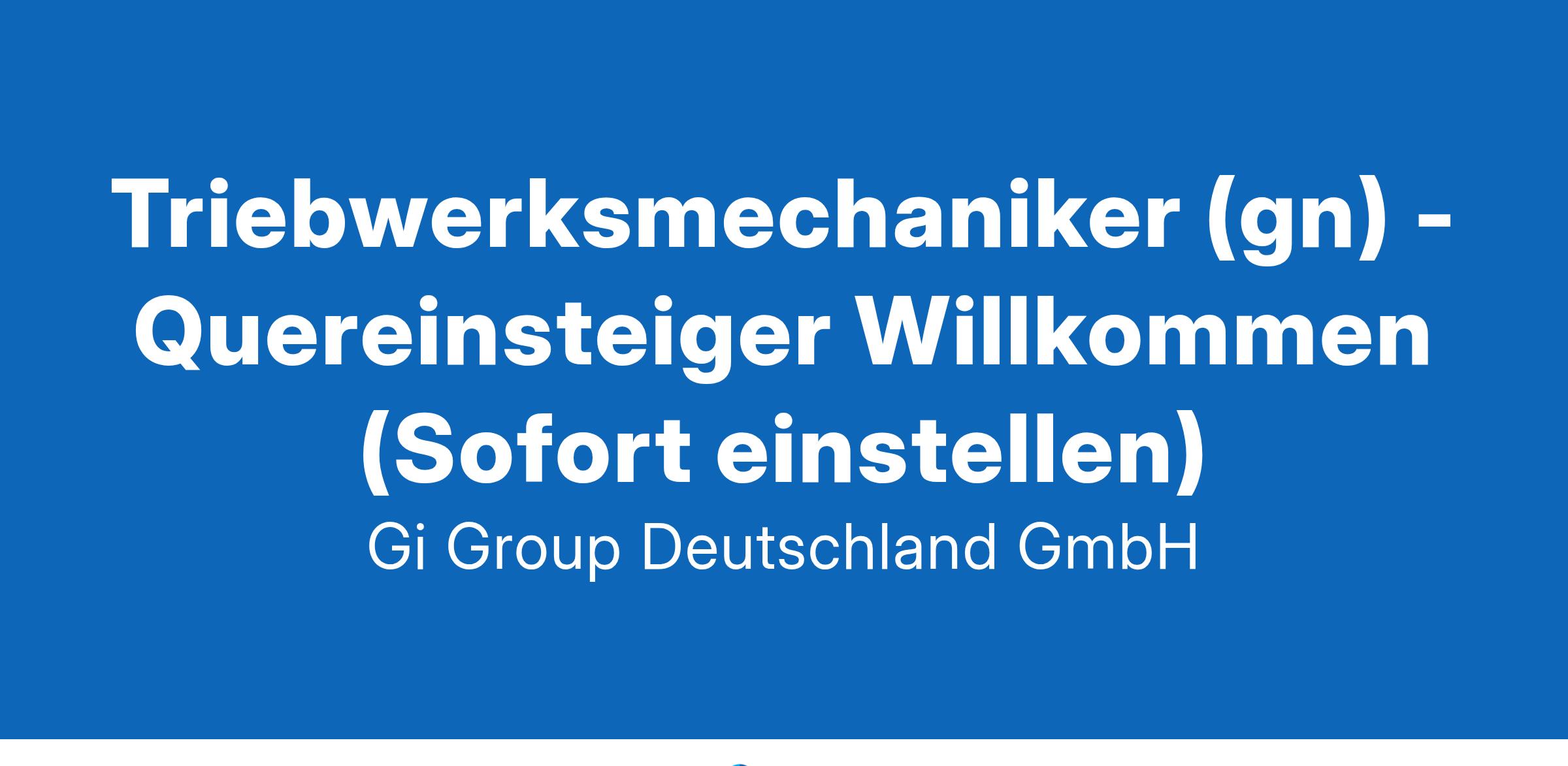 Facharbeiter (gn) Quereinstieg Triebwerke ab sofort in Vollzeit in Hamburg in der Direktvermittlung Die Gi Group ist ein international agierender Personaldienstleister mit mehr als 500 Standorten in 40 Ländern. Unser Kunde ist ein renommiertes und zukunftsorientiertes Unternehmen aus der Luftfahrt. Deine Aufgaben Demontage und Montage von Triebwerken und Triebwerksmodulen Mechanische Reparaturarbeiten von Triebwerkseinzelteilen, auch im Team, durchführen Triebwerke sowie deren Bauteile bereitstellen und befunden Dein Profil Eine abgeschlossene Berufsausbildung in einem metallverarbeitenden Beruf, z.B. Kfz-Mechatroniker, Anlagenmechaniker, Industriemechaniker, Feinwerkmechaniker, Konstruktionsmechaniker, Werkzeugmacher, Metallbauer oder eine abgeschlossene Berufsausbildung in einem anderen handwerklichen Beruf, z.B. Holzhandwerk, Medizintechnik etc. Englischkenntnisse wünschenswert Bereitschaft zum Schichtdienst (verschiedene Schichtmodelle mit Zulagen) Das bietet der Kunde Urlaubs- und Weihnachtsgeld sowie eine Gewinnbeteiligung, 30 Tage Urlaub Flugvergünstigungen, Einkaufsrabatte in Geschäften und Jobrad-Leasing Kostenloses Parken, betriebliche Altersvorsorge und Verpflegungszuschuss für die Kantine Fitness- und Sportangebote, Jobticket/Zuschuss ÖPNV Und vieles mehr Deine Bewerbung Für Deine Bewerbung als Facharbeiter im Quereinstieg in der Triebwerksüberholung klicke bitte einfach auf „Jetzt bewerben“. Dort kannst Du Deine Kontaktdaten eingeben sowie Deinen Lebenslauf und Deine Bewerbungsunterlagen hochladen. Du benötigst dafür nur ca. 1 Minute. Dein zuständiger Personaldisponent wird sich bei Dir schnellstmöglich melden. Gerne kannst Du uns auch Deine Bewerbungsunterlagen per E-Mail zusenden. Wir freuen uns auf Deine Bewerbung als Facharbeiter Quereinstieg in der Triebwerksüberholung! Unsere Stellenangebote richten sich an Arbeitssuchende jeglichen Geschlechts. (gn) = geschlechtsneutral. Kontakt Gi Group Recruiting Team