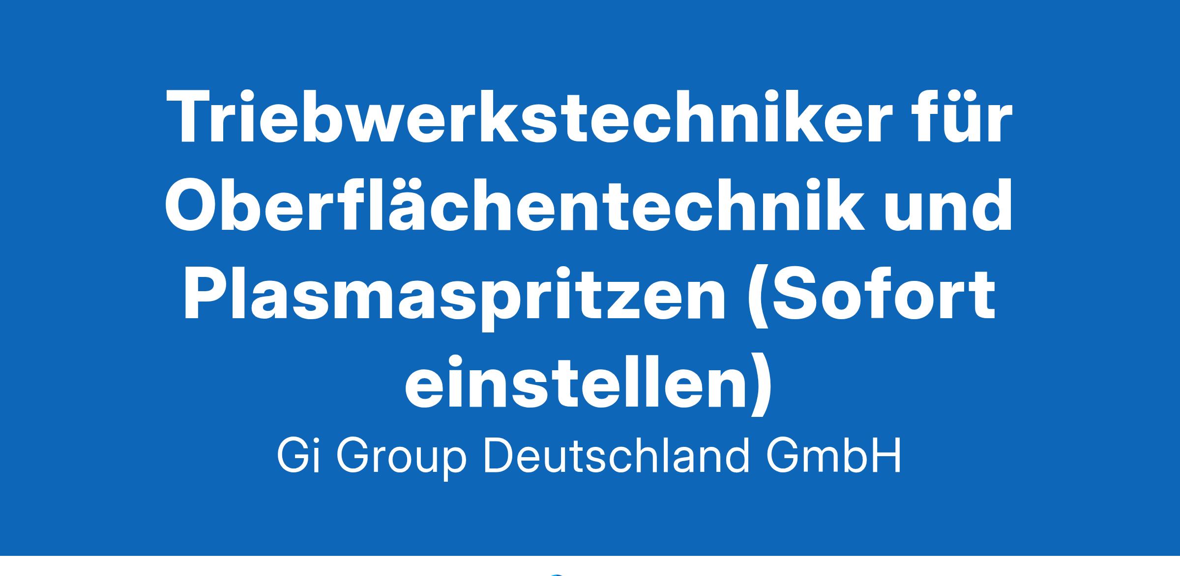 Triebwerkstechniker für Oberflächentechnik und Plasmaspritzen (Sofort einstellen)