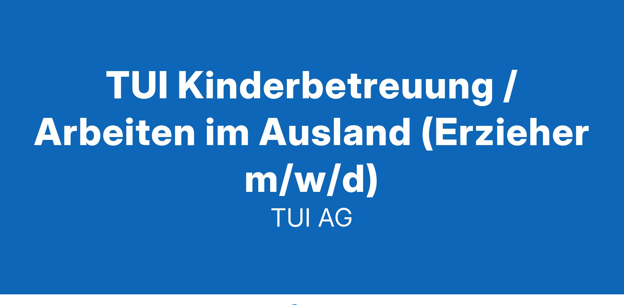 TUI Kinderbetreuung / Arbeiten im Ausland (Erzieher m/w/d)