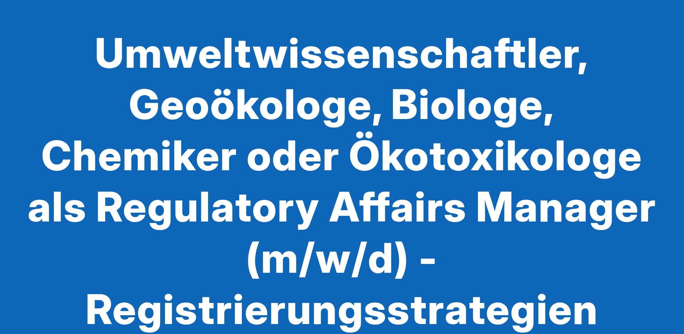 Erfahrungen im Bereich der Umweltrisikobewertung sowie dem Studienmonitoring (GLP) im Bereich Ökotoxikologie, Umweltverhalten sowie Wirksamkeit wünschenswert