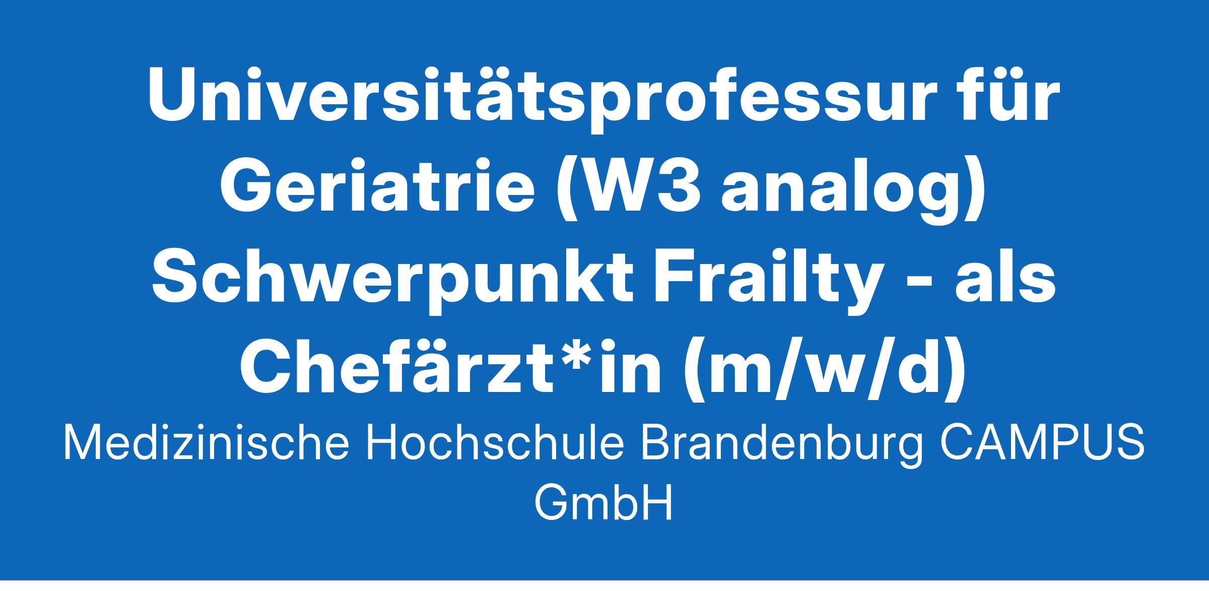 Mit der Professur ist die selbstständige Leitung der Klinik für Geriatrie und Alterstraumatologie am Universitätsklinikum Brandenburg adH verbunden.