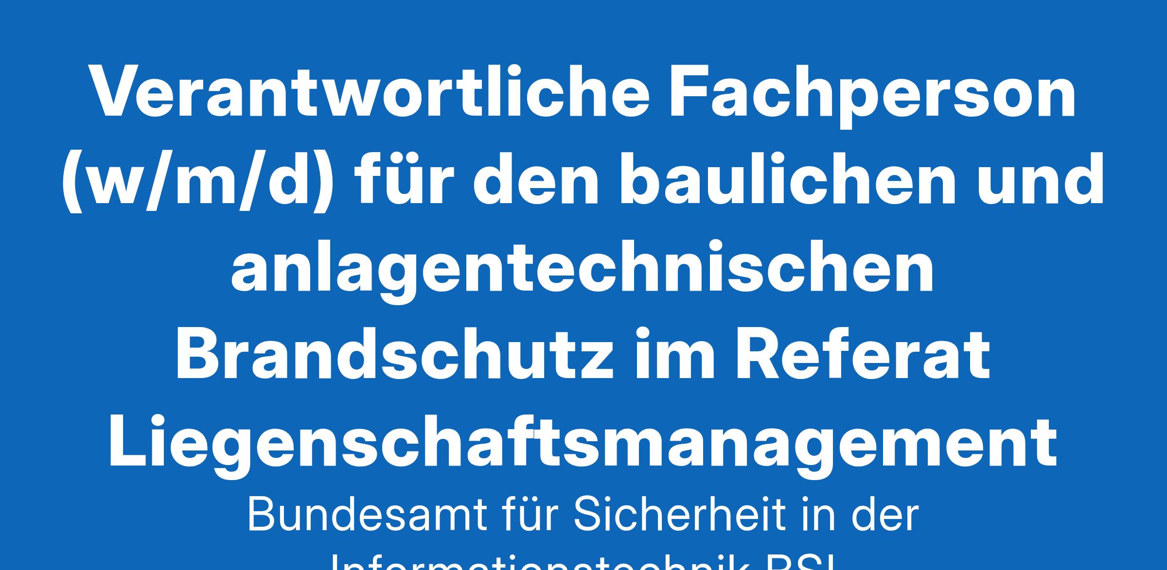 Verantwortliche Fachperson (w/m/d) für den baulichen und anlagentechnischen Brandschutz im Referat Liegenschaftsmanagement