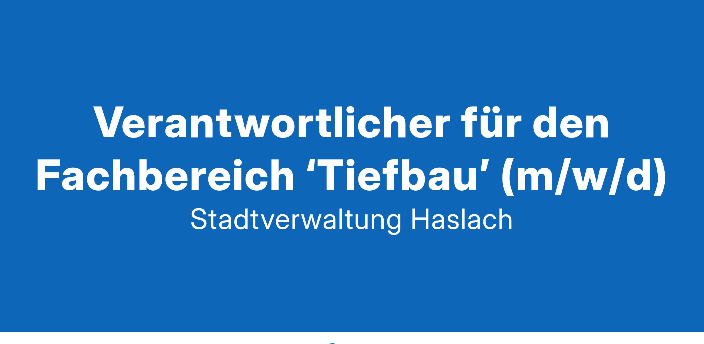 Verantwortlichen für den Fachbereich "Tiefbau" (m/w/d) Die Stadt Haslach im Kinzigtal (ca. 7.200 Einwohner) mit ihrer denkmalgeschützten historischen Altstadt ist eine charmante, moderne Kleinstadt im Herzen des Schwarzwalds und bietet eine hohe Lebens- und Erlebnisqualität mit zahlreichen Sport-, Kultur- und Freizeitangeboten. Mit fast 60 Fachgeschäften, Bistros, Cafes und Restaurants auf der Fläche der mittelalterlichen Stadt, die gerade mal 300 Meter im Kreisdurchmesser der Stadtmauern aufweist, gilt Haslach als quicklebendiges Ausflugsziel der Extraklasse. Zur Unterstützung unseres Teams im Stadtbauamt, Abteilung Tiefbau suchen wir zum nächstmöglichen Zeitpunkt eine/n in Vollzeit beschäftigte/n Verantwortlichen für den Fachbereich „Tiefbau“ (m/w/d) Umfang 39 Stunden Befristung unbefristet Vergütung bis EG 10 TVöD Beginn 01.06.2025 Ihre Aufgaben: Straßen, Brücken und Plätze, Erschließung von Baugebieten Abwasserbeseitigung Stadt Haslach und Verwaltungsgemeinschaft Haslach Friedhofswesen Kinderspielplätze Sportplätze, Stadion Gewässer, Wasserläufe Planung, Ausschreibung und Bauleitung bzw. Betreuung von Bau- und Unterhaltungsmaßnahmenmaßnahmen zu den o.g. Tätigkeitsbereichen Betreuung und Überwachung des Glasfaserausbaus Betreuung und Überwachung von Maßnahmen der Versorgungsunternehmen Das bringen Sie mit: Ein erfolgreich abgeschlossenes Studium in der Fachrichtung Bauingenieurwesen, ideal in der Fachrichtung „Tiefbau“ Meister oder Techniker in vergleichbarer Fachrichtung mit entsprechender Expertise Gute Fachkenntnisse im Bereich Tiefbau Gute Kenntnisse in VOB, kommunalem Vergabehandbuch (KVHB), EKVO u. a. Eigeninitiative, Verantwortungsbewusstsein und Teamfähigkeit Ausgeprägte Kommunikationsfähigkeit, sowie ein sicheres und freundliches Auftreten Fahrerlaubnis Klasse B oder 3 Wir bieten: Eine unbefristete zukunftssichere Anstellung in Vollzeit mit einem interessanten und abwechslungsreichen Aufgabengebiet Eine leistungsgerechte Eingruppierung nach dem Tarifvertrag des öffentlichen Dienstes (TVöD) bis Entgeltgruppe 10 (bei Vorliegen der persönlichen Voraussetzungen) Betriebliche Altersvorsorge Persönliche Weiterentwicklung durch ein vielseitiges Fortbildungsangebot Mitarbeit in einem engagierten, kollegialen Team Job-Bike Kontakt bei Rückfragen: Nähere Auskünfte zur Tätigkeit erhalten Sie gerne von Herrn Manfred Schöner, unter der Tel. 07832 706-135 und zum Arbeitsverhältnis von Frau Simone Volk unter der Tel. 07832 706-114. haslach.de Online-Bewerbung