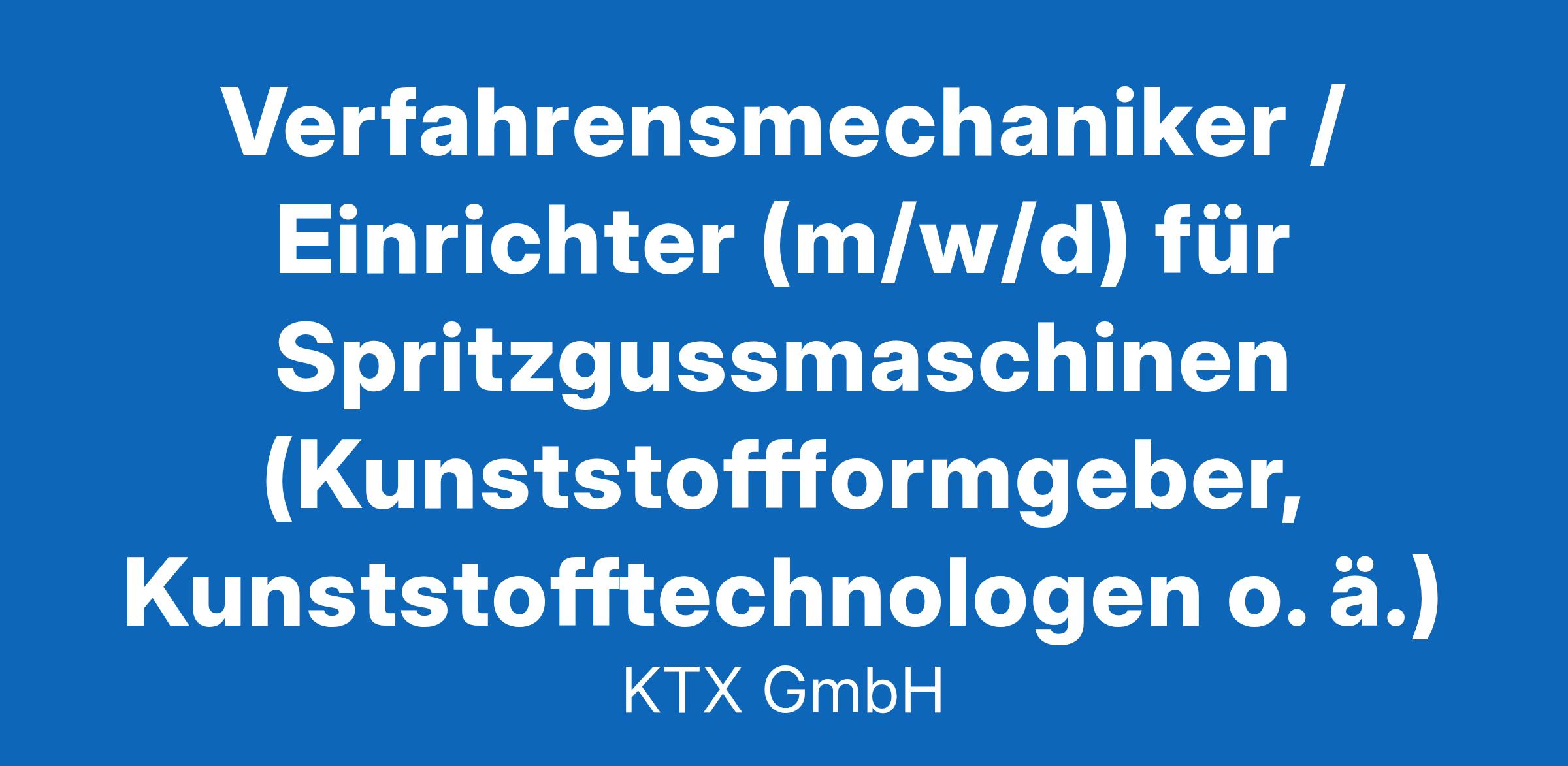 Die KTX GmbH ist ein innovatives, global ausgerichtetes Unternehmen der Automobilzulieferindustrie. Mit Erfolg und Leidenschaft produzieren und entwickeln wir an den Standorten Weißenburg, Solingen, Toccoa (USA) sowie Subotica (Serbien) mit rund 900 Mitarbeitern Interieur & Exterieur-Komponenten für die Automobilindustrie. Dabei setzen wir auf langjährige Expertise, geballtes Know-how und innovative Technologien. Zur Unterstützung unserer Abteilung Spritzguss in 91781 Weißenburg suchen wir zum nächstmöglichen Zeitpunkt einen: Verfahrensmechaniker / Einrichter (m/w/d)