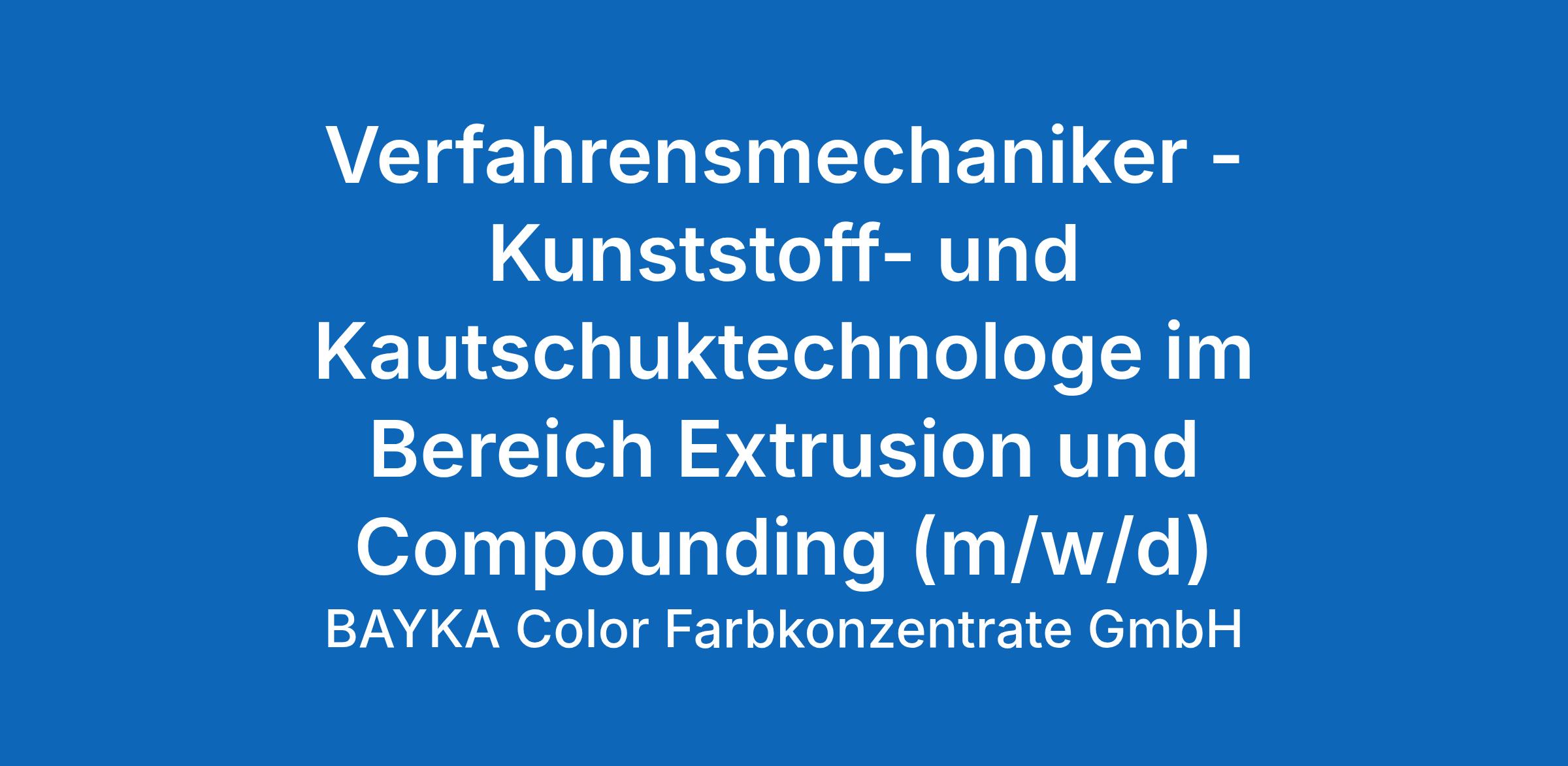 Sie haben eine abgeschlossene Berufsausbildung zum Verfahrensmechaniker (m/w/d) oder Kunststoff- und Kautschuktechnologen (m/w/d) oder eine vergleichbare Qualifikation.