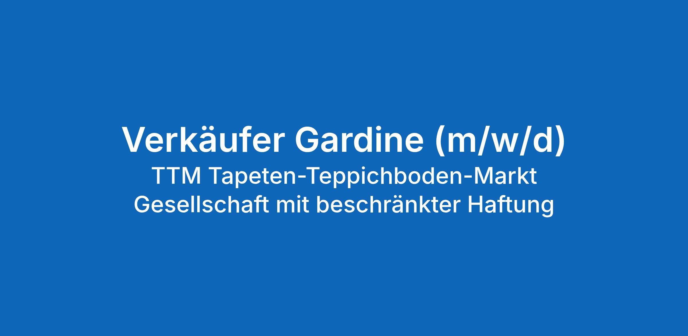 Bei TTL/TTM sind Sie mehr als ein:e Verkäufer:in - Sie sind der kreative Berater, der Wohnträume wahr werden lässt. In unserer Gardinenabteilung stehen Sie unseren Kunden mit Fachwissen und Stilgefühl zur Seite und schaffen gemeinsam mit ihnen individuelle Lösungen für ein schönes Zuhause.