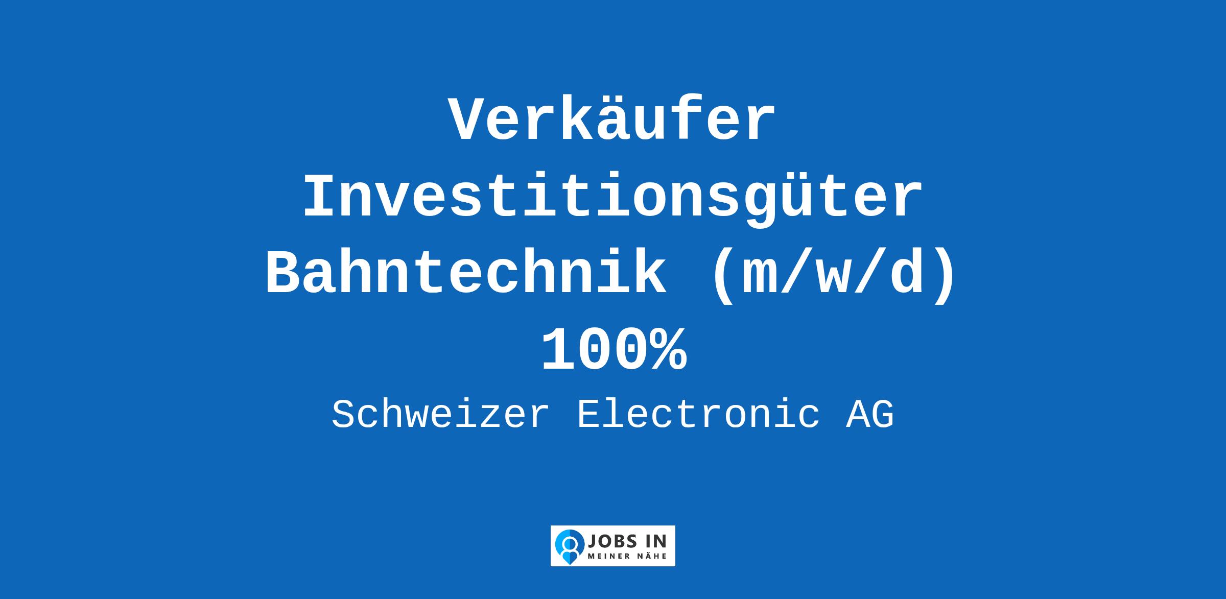 Die Schweizer Electronic AG entwickelt, produziert und vertreibt seit 1964 zukunftsgerichtete Produkte und Dienstleistungen für die Sicherheit im Bahnverkehr. In unseren vier Geschäftsfeldern Warnanlagen, Bahnautomation, Funksysteme und Innovation & Digitalisierung, bieten wir vielseitige und spa... Ausschreibung;Kompetent;Sicherung;Innovativ denken;Vertrieb;Verkaufsprojekt;Deutsch;Projektmanagement;Bahntechnik;Investitionsgüter;Behörden;Kundenorientiert;Führung;Umsetzungsstark;Flexibilität;Marktforschung;Verhandlungsführung;Deutsch;Kundenkontakt;Entwicklung;Wertschöpfung;Reisebereitschaft;Key Account;Business Unit;Betreuung Original Stellenanzeige auf StepStone.de – Jetzt Jobagent bei StepStone einrichten und Traumjob finden! https://bit.ly/2KOagYD Mehr Informationen zu Arbeitgebern, Gehaltsdaten und Karrieretipps finden Sie auf StepStone.de