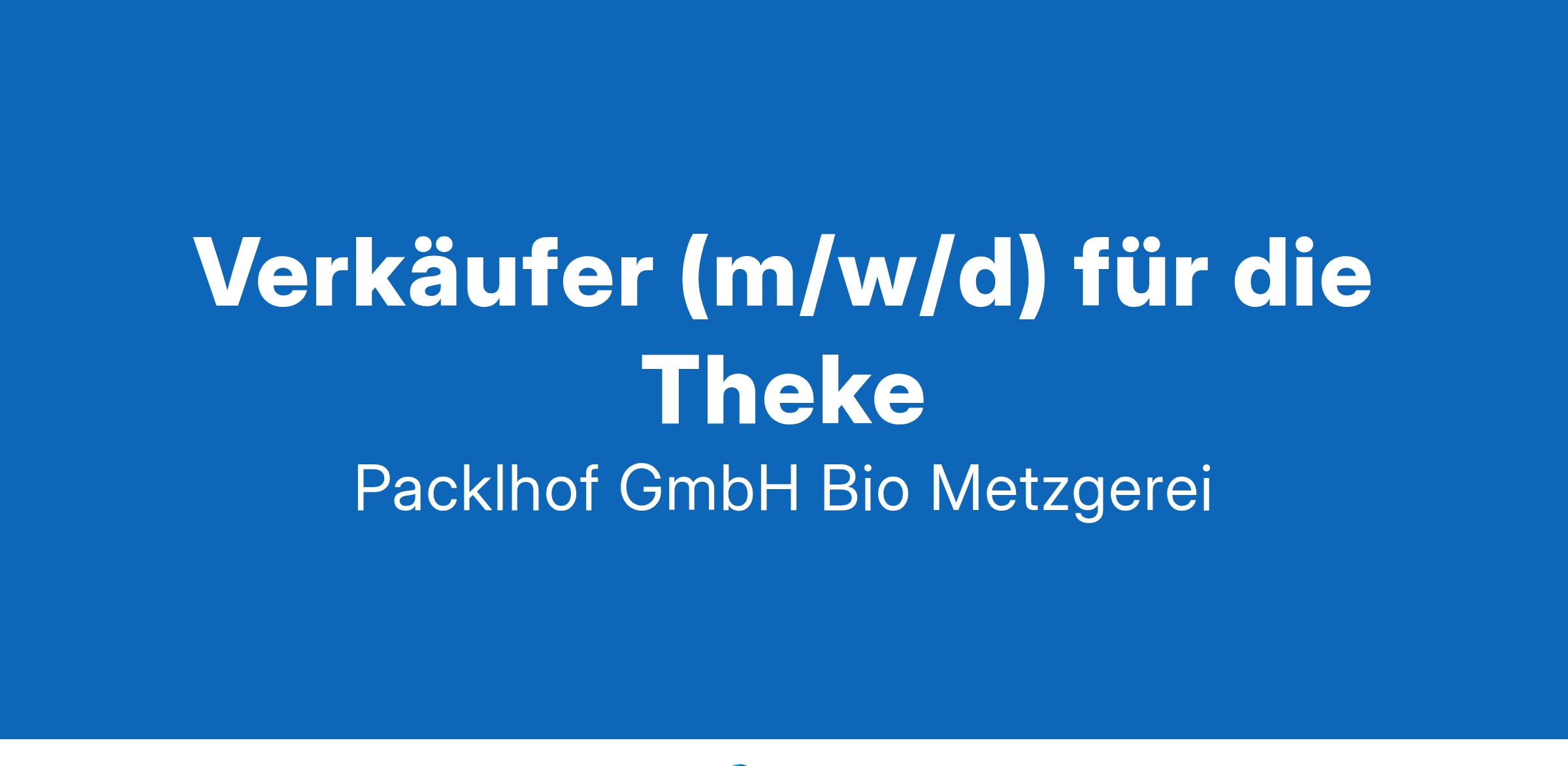 Wir, die Metzgerei Packlhof, sind eine, seit vielen Jahren erfolgreiche, Bio-Metzgerei mit Sitz in Eurasburg. Was uns jeden Tag aufs Neue antreibt ist die Leidenschaft Fleisch- und Wurstwaren in bester Bioqualität zu produzieren und zu verkaufen. Wir suchen, zum nächstmöglichen Zeitpunkt, Verkäufer (m/w/d) für die Theke Metzgerei Packlhof GmbH, Am Mühlbach 3, 82547 Eurasburg