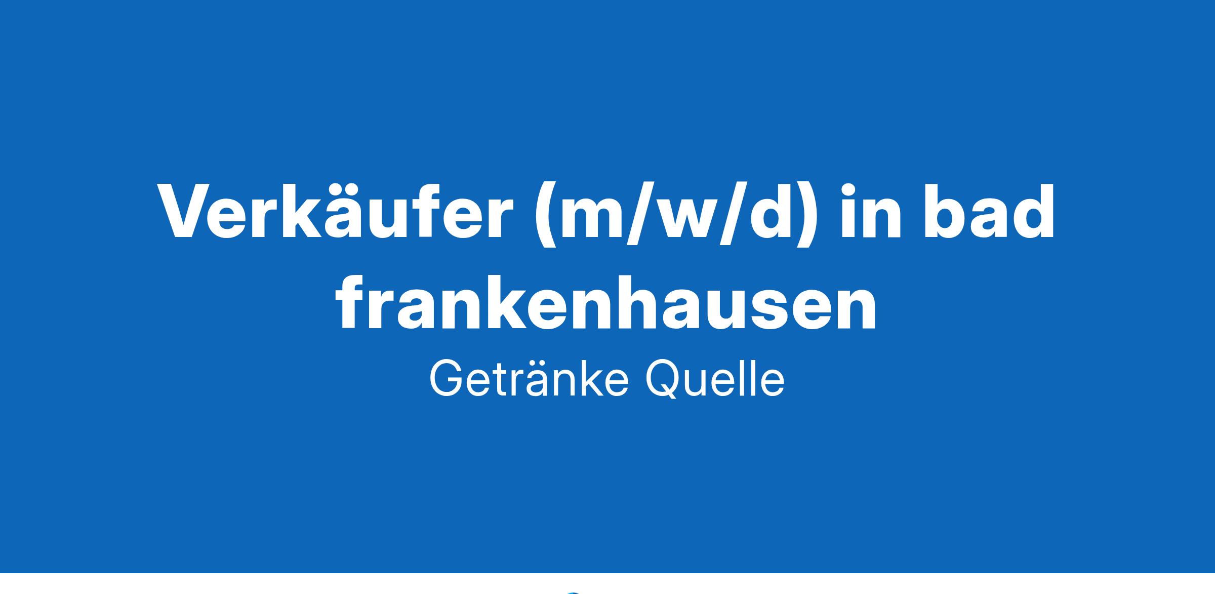 Getränke-Quelle06567 Bad FrankenhausensuchtWir stellen zum nächstmöglichen Zeitpunkt Verkäufer (m/w/d) ein. Quereinsteiger sind herzlich willkommen!Was bieten wir?eine verantwortungsvolle Tätigkeitein nettes, kollegiales Arbeitsklimaeinen zukunftsicheren Arbeitsplatz in einem mittelständischen Unternehmeneine pünktliche Bezahlungbetriebliche AltersvorsorgeWeiterbildung durch E-LearningIhr ProfilPositive Einstellung zur DienstleistungDeutsch in Wort und SchriftGepflegtes ErscheinungsbildFreude an der Beratung und Bedienung unserer KundenIhre AufgabenAktiver VerkaufKundenberatungverkaufsfördernde WarenpräsentationWareneingangs- und QualitätskontrolleWare verräumenLeergutannahmeSicherstellen des optischen Erscheinungsbildes der FilialeKassier- und InventurtätigkeitenWenn wir Ihr Interesse geweckt haben, freuen wir uns über Ihre Bewerbung!