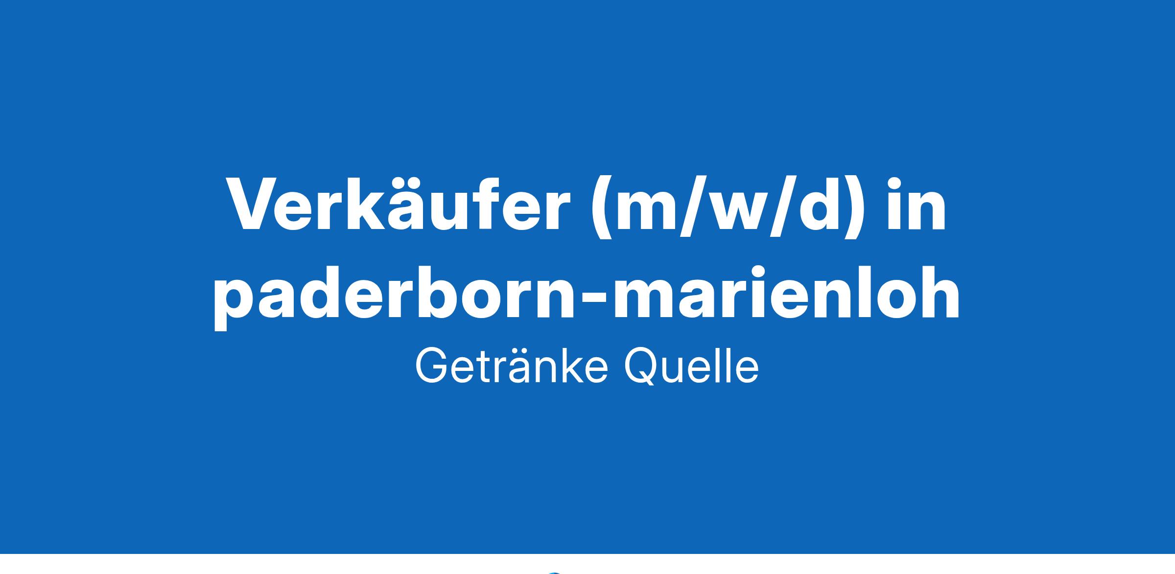 Getränke-Quelle33104 Paderborn-MarienlohsuchtWir stellen zum nächstmöglichen Zeitpunkt Verkäufer (m/w/d) ein. Quereinsteiger sind herzlich willkommen!Was bieten wir?eine verantwortungsvolle Tätigkeitein nettes, kollegiales Arbeitsklimaeinen zukunftsicheren Arbeitsplatz in einem mittelständischen Unternehmeneine pünktliche Bezahlungbetriebliche AltersvorsorgeWeiterbildung durch E-LearningIhr ProfilPositive Einstellung zur DienstleistungDeutsch in Wort und SchriftGepflegtes ErscheinungsbildFreude an der Beratung und Bedienung unserer KundenIhre AufgabenAktiver VerkaufKundenberatungverkaufsfördernde WarenpräsentationWareneingangs- und QualitätskontrolleWare verräumenLeergutannahmeSicherstellen des optischen Erscheinungsbildes der FilialeKassier- und InventurtätigkeitenWenn wir Ihr Interesse geweckt haben, freuen wir uns über Ihre Bewerbung!