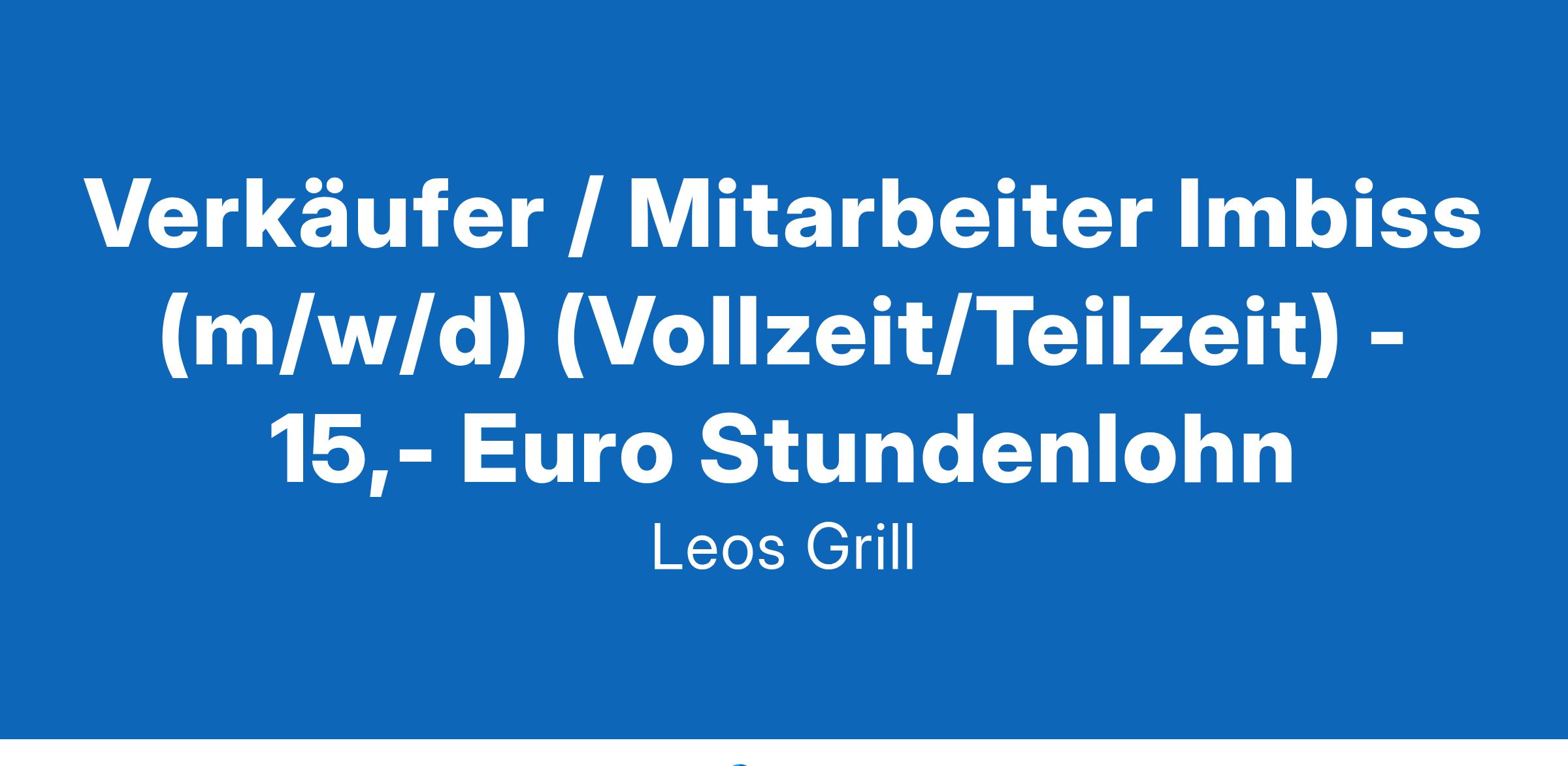 Verkäufer / Mitarbeiter Imbiss (m/w/d) (Vollzeit/Teilzeit) - 15,- Euro Stundenlohn