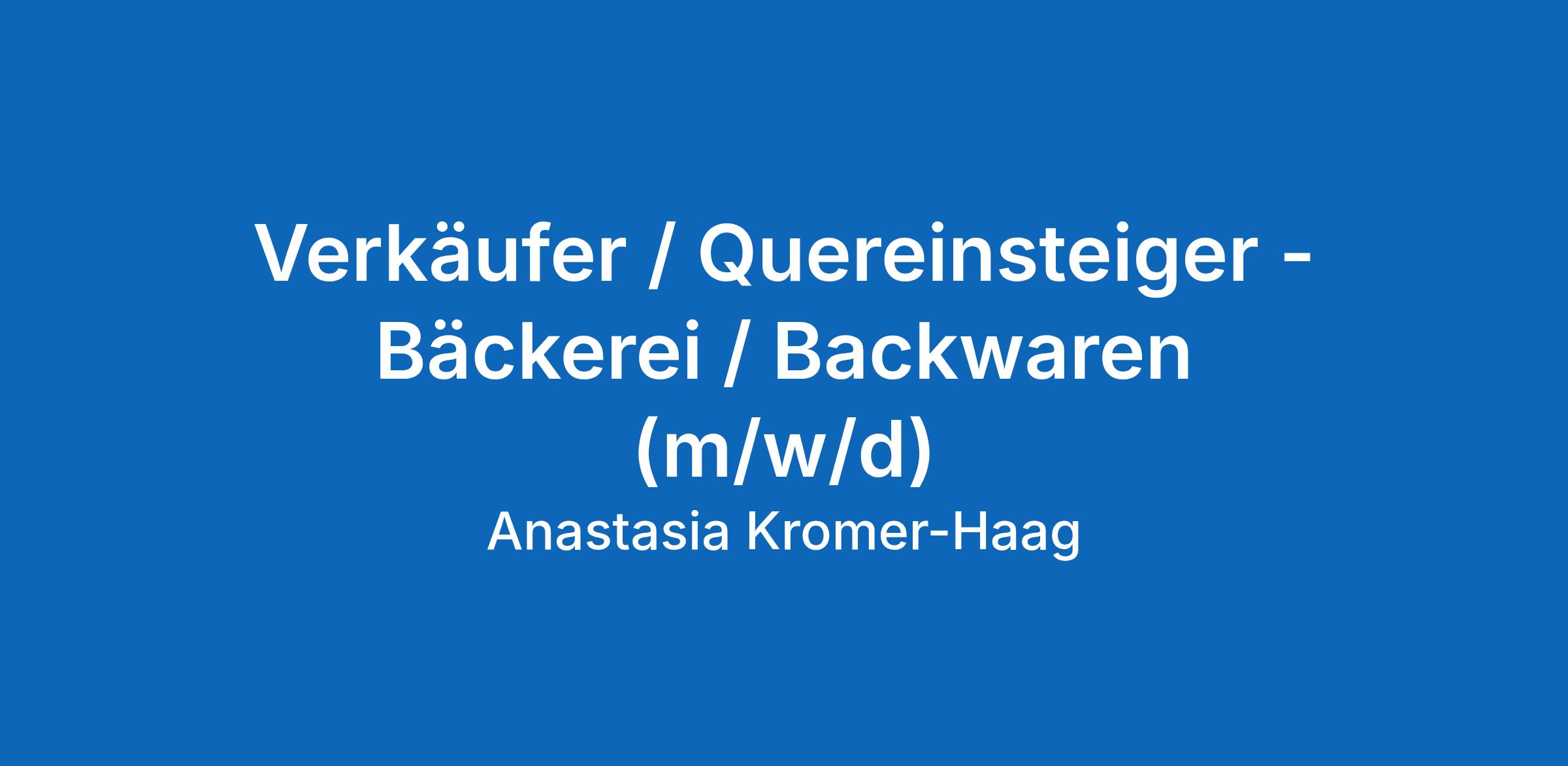Verkäufer / Quereinsteiger - Bäckerei / Backwaren (m/w/d)