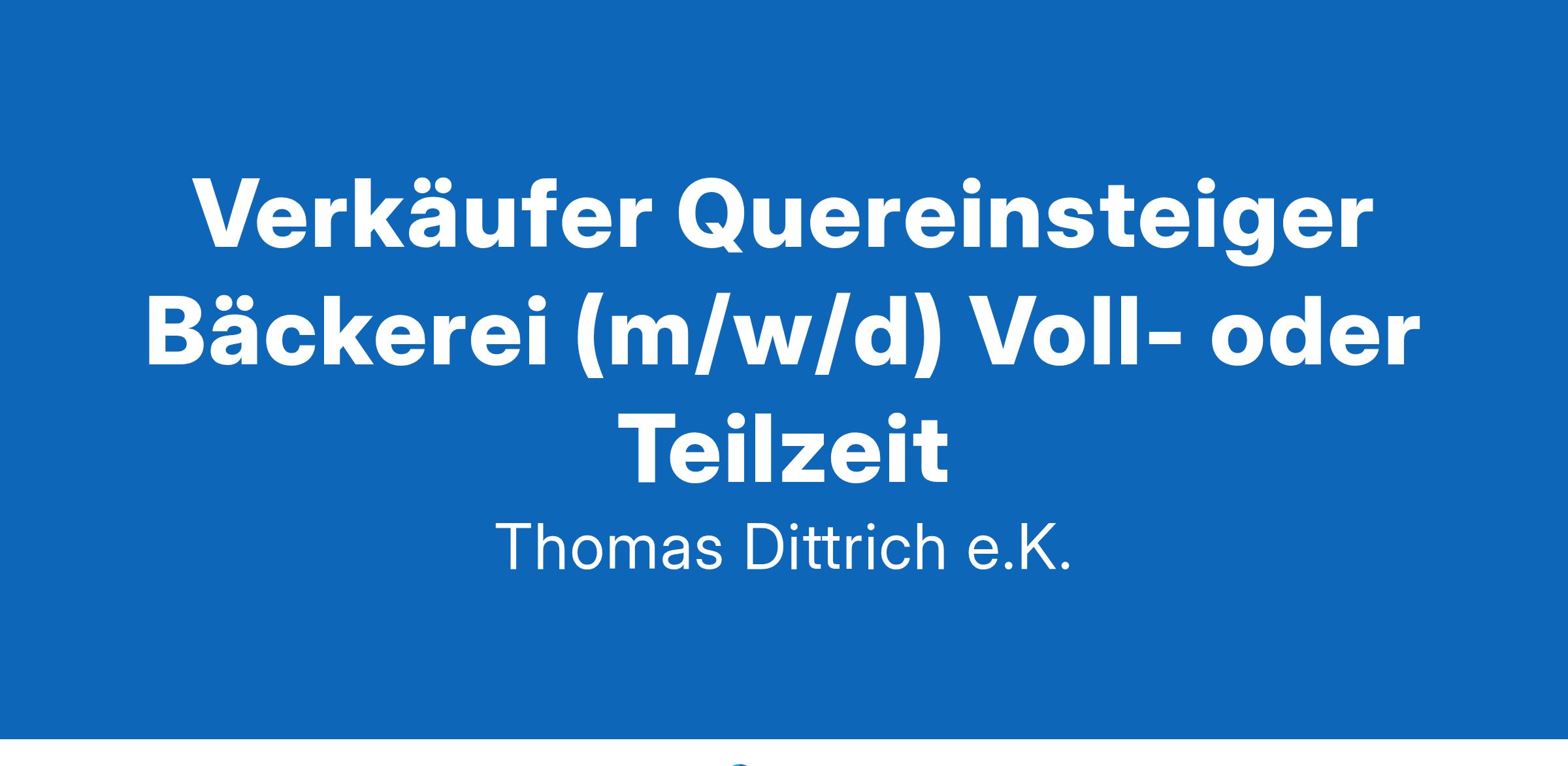Mach was dein Herz dir sagt! EDEKA Dittrich ist ein familiengeführtes Unternehmen im Nord-Westen von Baden-Württemberg. Unseren 45 Mitarbeiterinnen und Mitarbeitern bieten wir einen attraktiven und sicheren Arbeitsplatz. Bei uns steht die Umwelt an hoher Stelle – so bieten wir unseren Kunden regionale und frische Produkte, denn bei EDEKA Dittrich wird Frische erlebt. Für unseren Standort Sinsheim suchen wir Sie als Verkäufer Quereinsteiger Bäckerei (m/w/d) Vollzeit oder Teilzeit Referenznummer: 31572 Ihre Aufgaben Kundenservice: Sie bedienen und beraten unsere Kunden an der Frischetheke Wareneingangskontrolle: Sie kontrollieren die Waren auf Qualität und Frische Kreative Warenpräsentation: Sie präsentieren die Ware ansprechend in der Frischetheke Disposition: Sie führen die Warenbestellungen bedarfsgerecht durch HACCP: Sie halten gesetzliche und betriebsinterne Hygienevorschriften ein Ihre Voraussetzungen Ausbildung: Eine abgeschlossene Ausbildung im Lebensmitteleinzelhandel (Bedienungsbereich) ist von Vorteil Quereinsteiger: Auch Quereinsteiger wie Köche oder Servicekräfte aus der Gastronomie sind willkommen und werden gerne von uns eingelernt Erfahrungen und Kenntnisse: Idealerweise verfügen Sie über Erfahrung an der Frischetheke (Fleisch, Wurst, Käse oder Fisch) Kundenorientiertes Auftreten: Zu Ihren Stärken zählen Kreativität, Freundlichkeit, Qualitätsbewusstsein und Kommunikationsfähigkeit Ihre Vorteile Verpflegung: Bei uns erhalten Sie kostenfreie Heißgetränke und 50% Rabatt auf Tagesessen Absicherung: Wir bieten Ihnen eine betriebliche Altersvorsorge Erholung: Bei uns erhalten Sie 36 Tage Urlaub im Jahr Events: Genießen Sie unsere Weihnachtsfeier Sonderleistung: Wir unterstützen Sie durch vermögenswirksame Leistung Sonderzahlungen: Bei uns erhalten Sie Urlaubs- und Weihnachtgeld Flexible Arbeitszeiten: Unsere Dienstpläne werden gemeinsam geplant und angepasst Weiterbildung: Profitieren Sie von unseren zahlreichen Fort- und Weiterbildungsmöglichkeiten Interessiert? Wir freuen uns auf Ihre Bewerbung mit Angabe Ihrer Verfügbarkeit und Gehaltsvorstellung. Aus Gründen der besseren Lesbarkeit unserer Stellenanzeigen wird auf die gleichzeitige Verwendung der Sprachformen männlich, weiblich und divers verzichtet. Sämtliche Personenbezeichnungen gelten selbstverständlich für alle Geschlechter. Ihre Ansprechperson Thomas Dittrich Mehr über EDEKA Südwest: https://karriere-edeka.de/