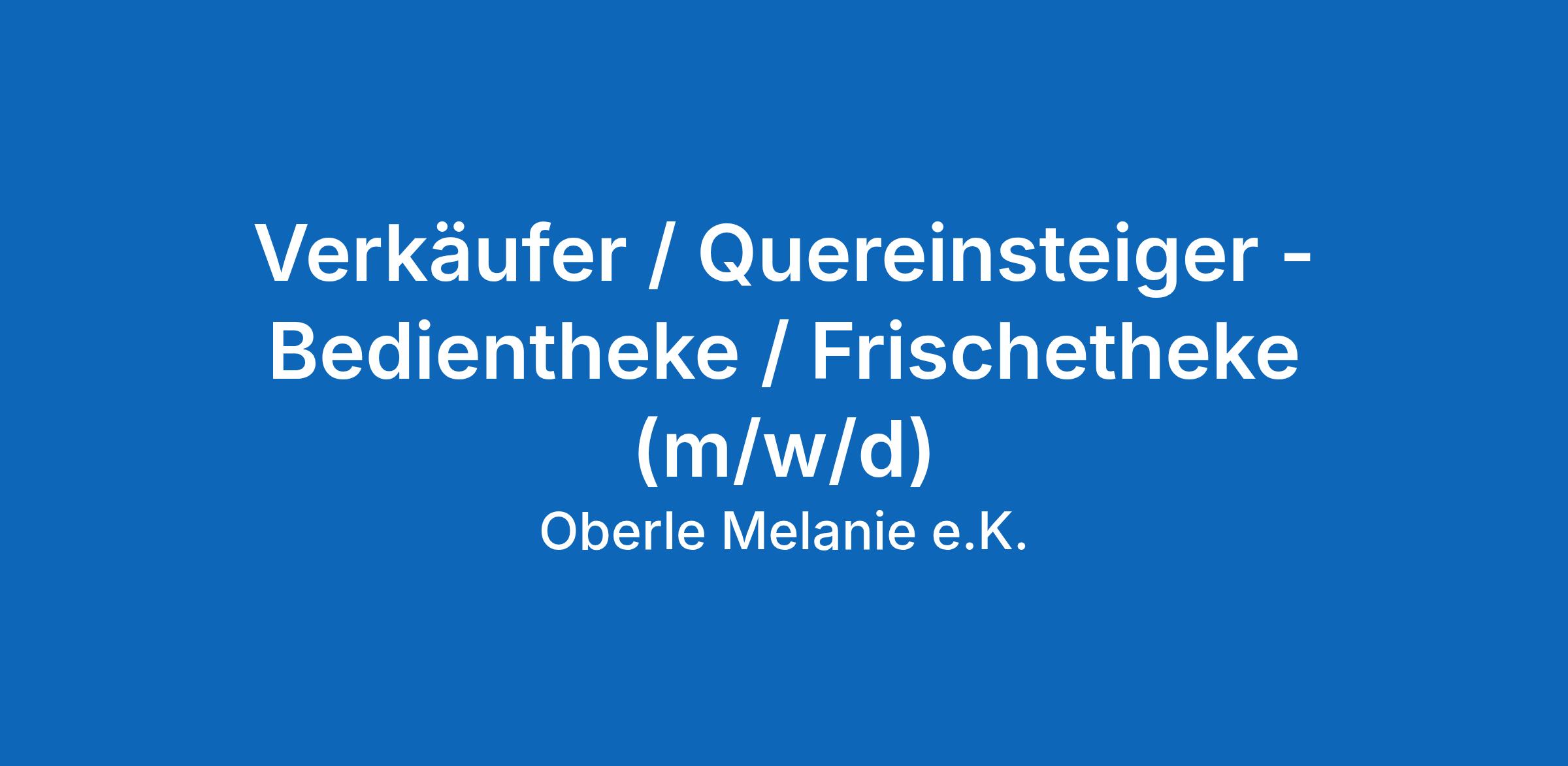 Verkäufer / Quereinsteiger - Bedientheke / Frischetheke (m/w/d)