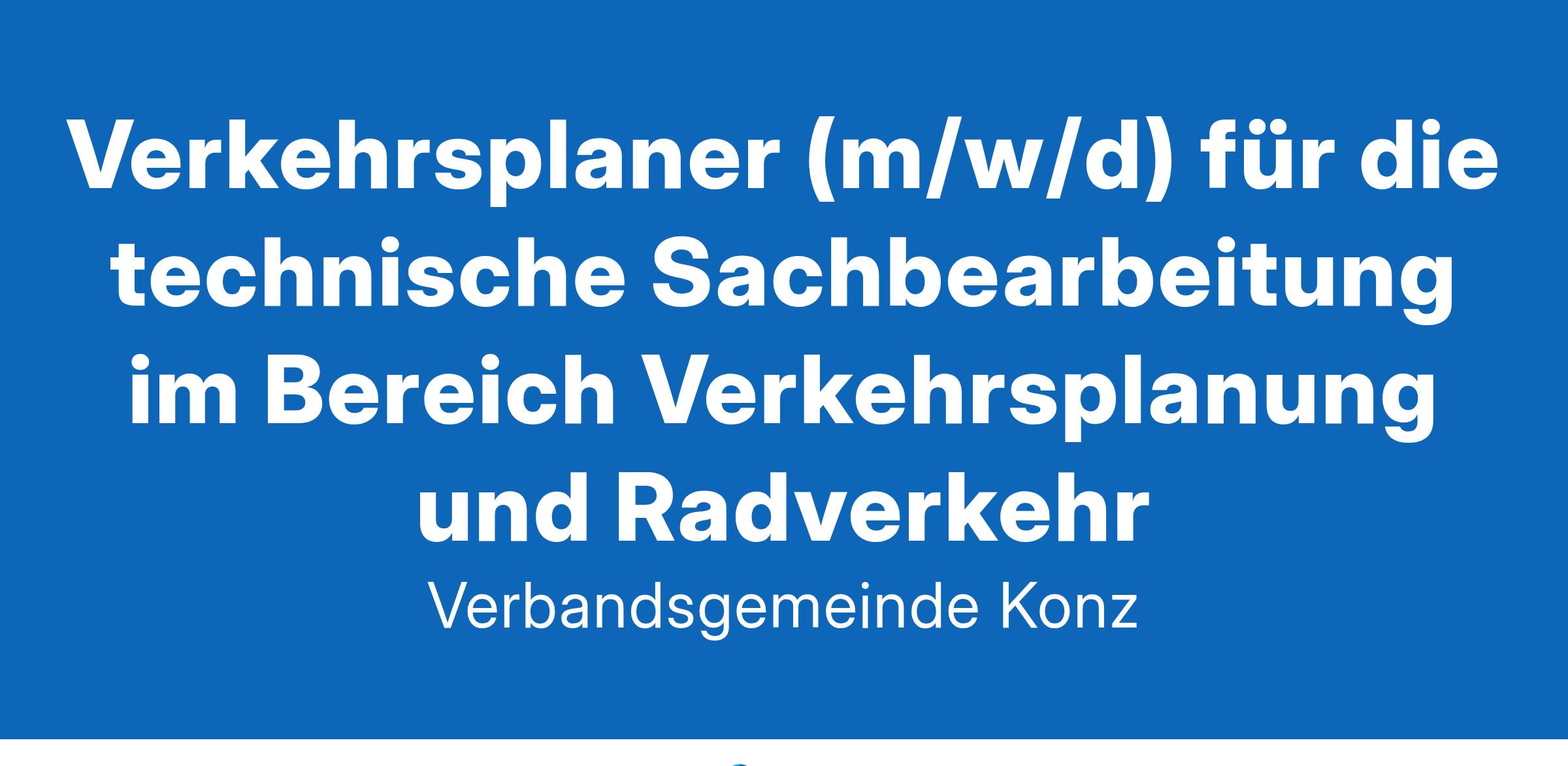 Verkehrsplaner (m/w/d) für die technische Sachbearbeitung im Bereich Verkehrsplanung und Radverkehr Die Verbandsgemeinde Konz sucht zum nächstmöglichen Zeitpunkt für den Fachbereich 3/ Bauen - Tiefbau - einen Verkehrsplaner (m/w/d) für die technische Sachbearbeitung im Bereich Verkehrsplanung und Radverkehr Bewerben Sie sich bitte mit Ihren aussagekräftigen Unterlagen bis zum 27. Februar 2025: bewerbung@konz.de Verbandsgemeindeverwaltung Konz Fachbereich 1/Personal Am Markt 11, 54329 Konz Ausführliche Infos finden Sie unter: www.konz.de/stellenangebote