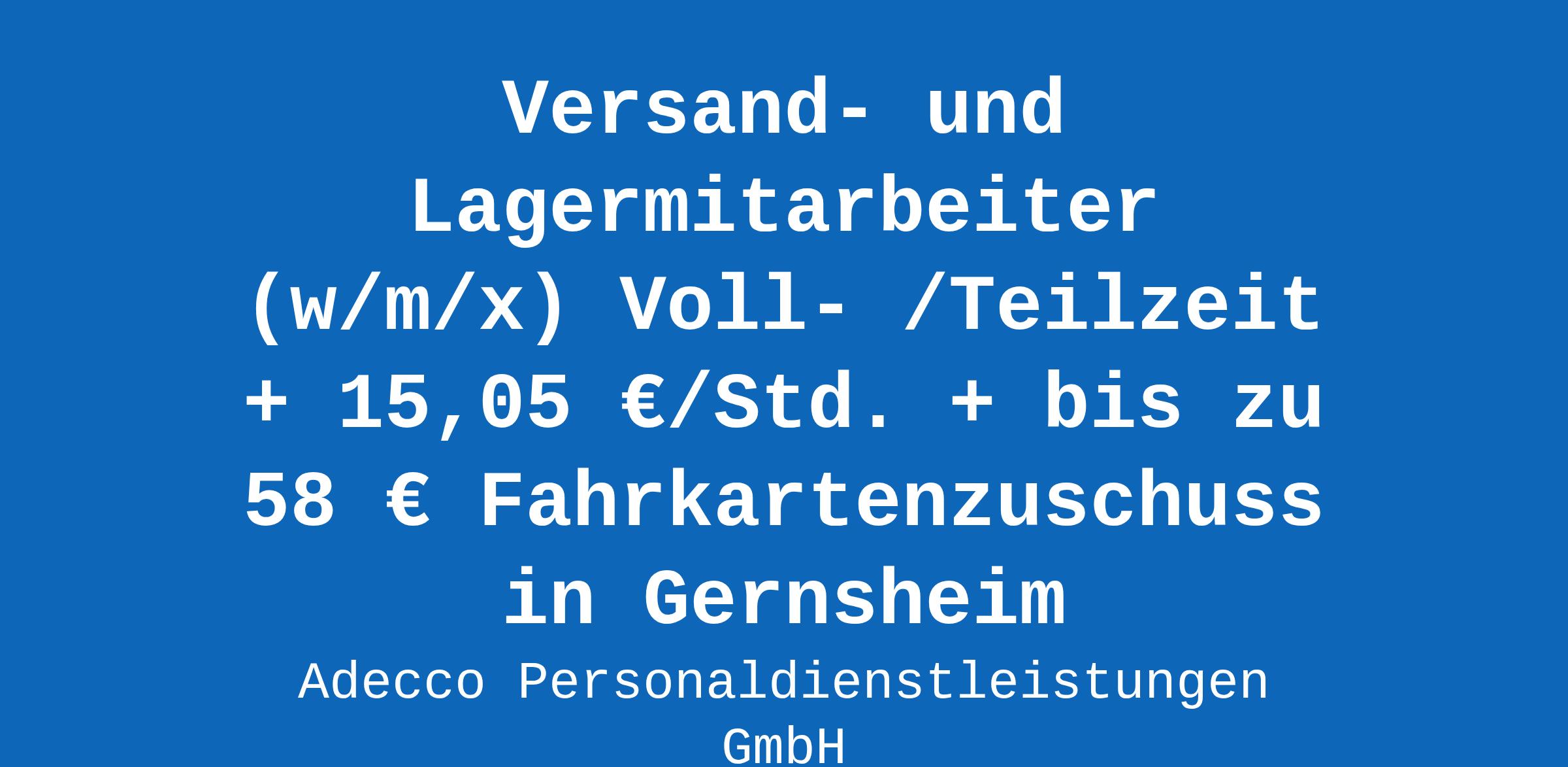 Versand- und Lagermitarbeiter (w/m/x) Voll- /Teilzeit + 15,05 €/Std. + bis zu 58 € Fahrkartenzuschuss in Gernsheim