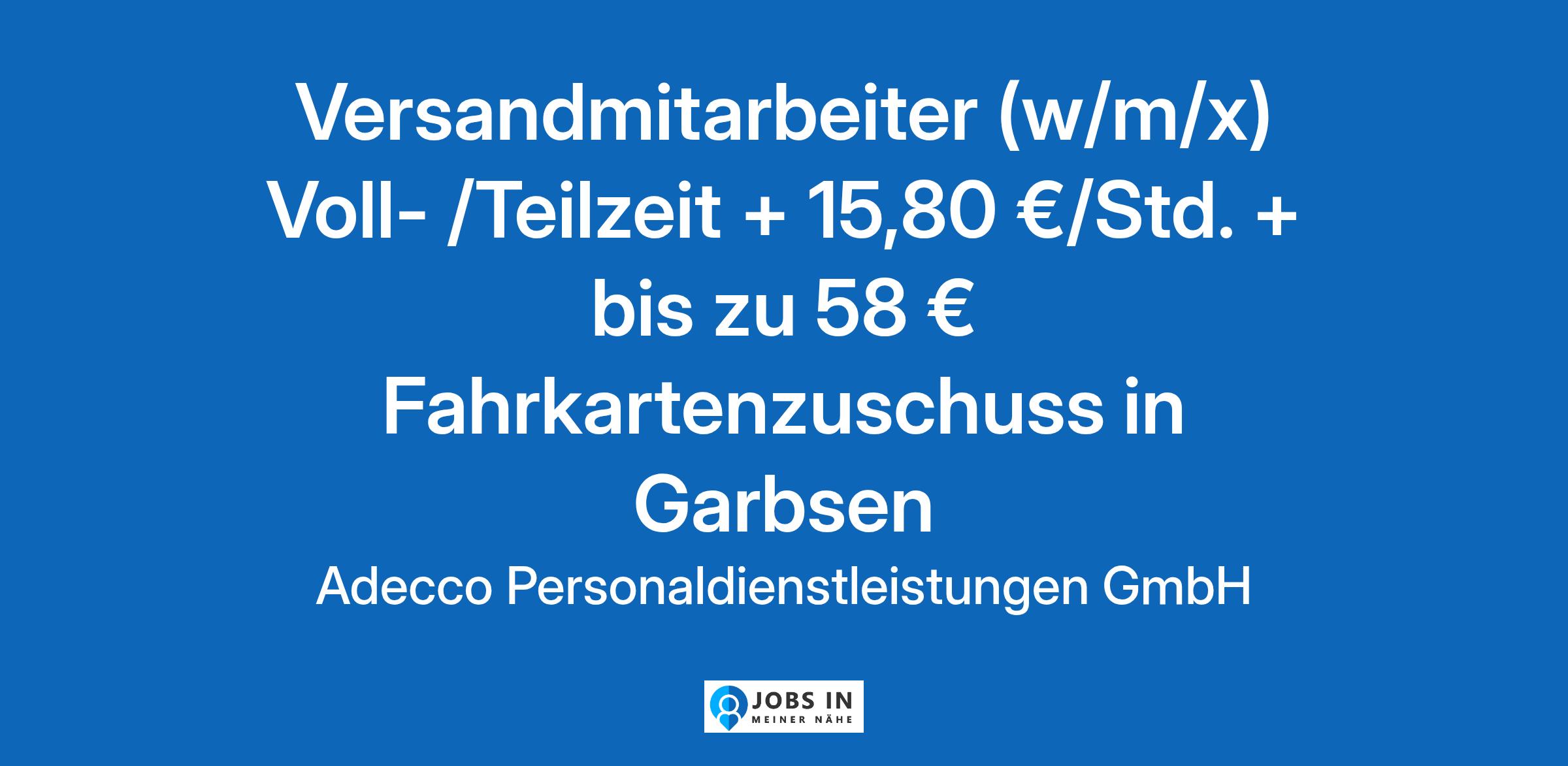Versandmitarbeiter (w/m/x) Voll- /Teilzeit + 15,80 €/Std. + bis zu 58 € Fahrkartenzuschuss in Garbsen