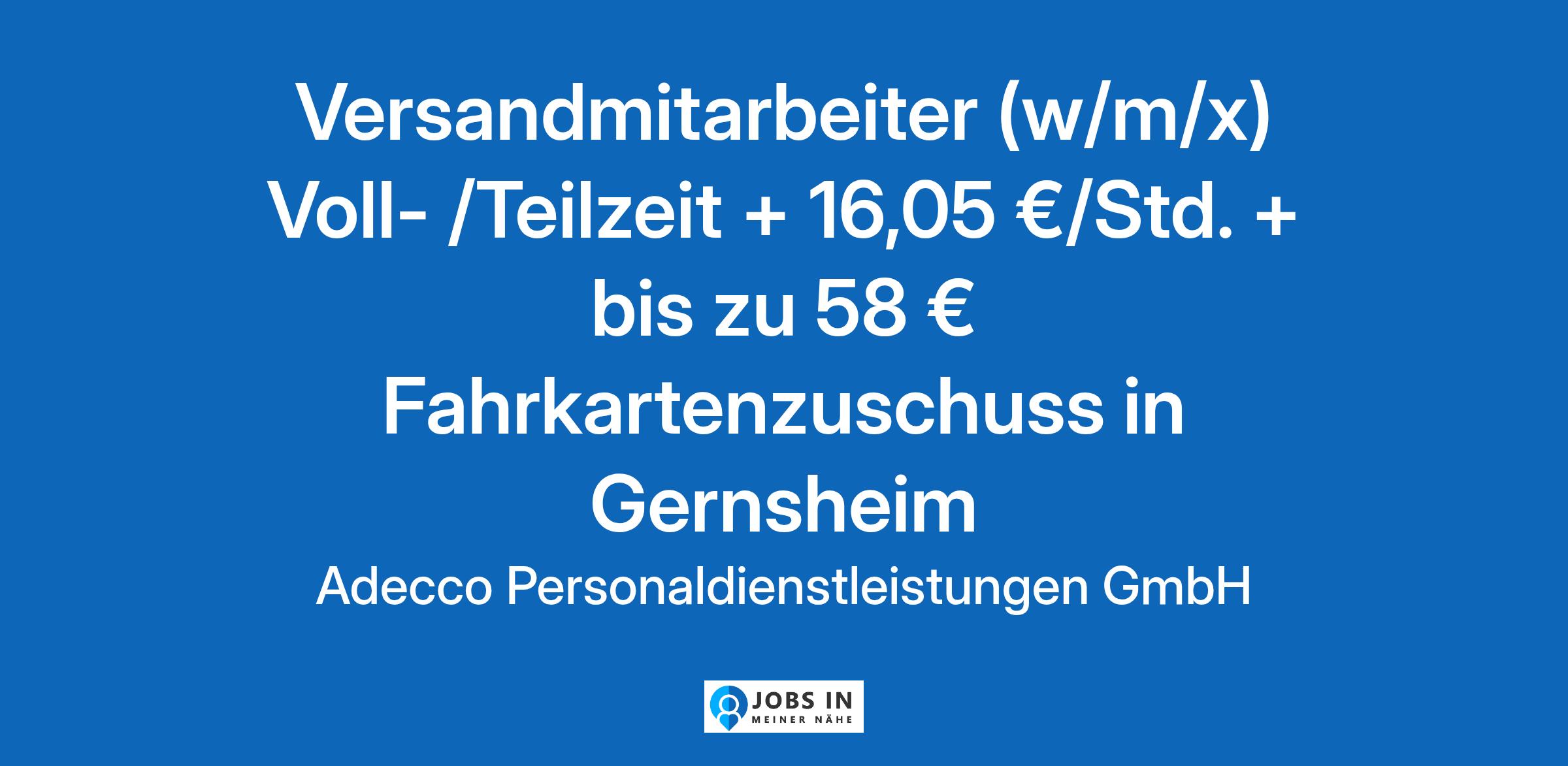 Versand- und Lagermitarbeiter (w/m/x) Voll- /Teilzeit + 16,05 €/Std. + bis zu 58 € Fahrkartenzuschuss in Gernsheim