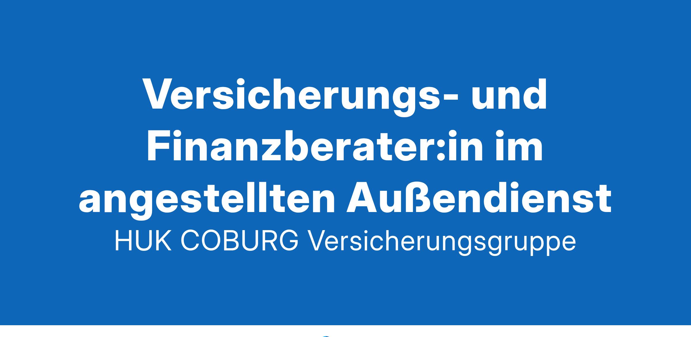 Zielorientierte und selbstständige ArbeitsweiseUnsere BenefitsAus- und Weiterbildung: Anstellung beim größten deutschen Privatversicherer, bei dem Aus- und Weiterbildung großgeschrieben wirdDienstwagen: Dienstwagen auch zur privaten NutzungTerminversorgung: Terminversorgung durch uns: Durch die hohe Bekanntheit der HUK-COBURG stellen wir sicher, dass du dich vollumfänglich auf die Beratung konzentrieren kannstAttraktive Vergütung: Attraktives Festgehalt mit Urlaubs- und Weihnachtsgeld zuzüglich leistungsorientierter Vergütung und 31,5 Urlaubstage + Weihnachten und Silvester freiFinanzielle Absicherung: Provisionsausfallzahlung als AbsicherungHaben wir dein Interesse geweckt?Dann bewirb dich jetzt!