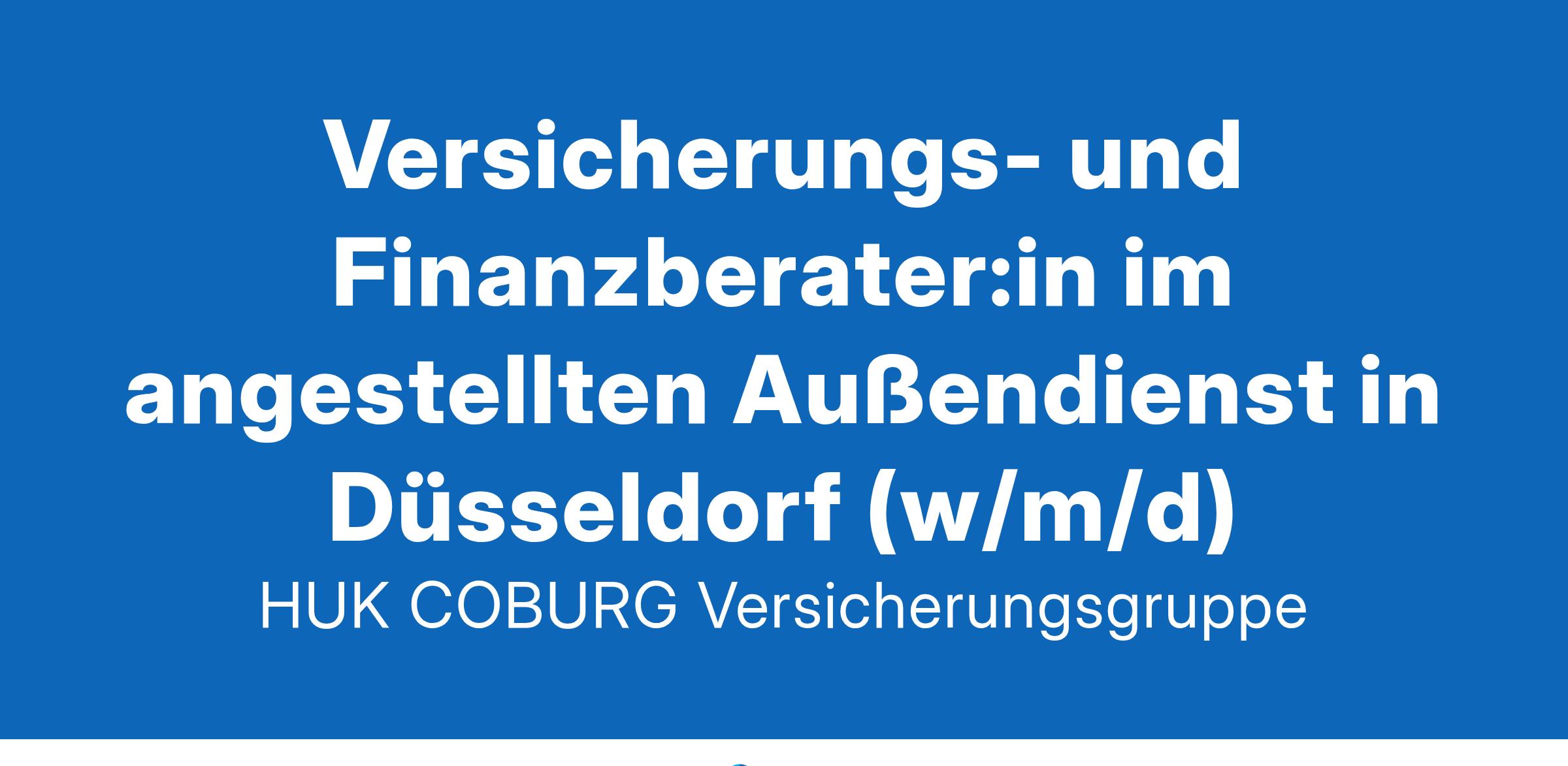 Versicherungs- und Finanzberater:in im angestellten Außendienst in DüsseldorfVollzeit, ab dem 01.04.2025 in Düsseldorf, befristet bis zum 31.03.2027Darauf kannst du dich freuenWahrnehmung von Beratungsterminen; keine Kaltakquise