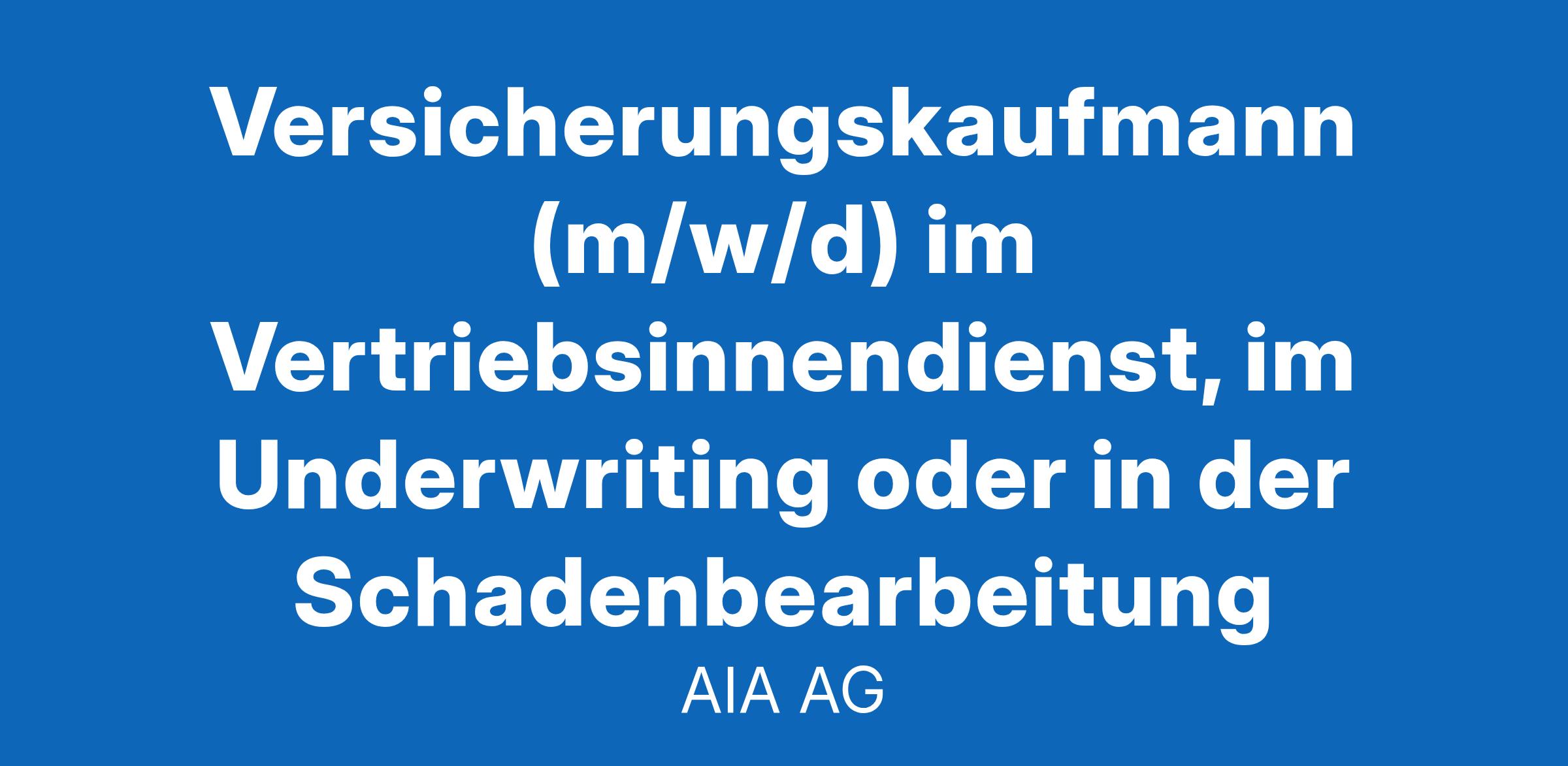 ARBEITGEBER MIT WEITSICHT VERSICHERUNGSKAUFMANN (M/W/D) im Vertriebsinnendienst, im Underwriting oder in der Schadenbearbeitung DAS IST DIE AIA Die AIA AG ist seit über 45 Jahren als unabhängiger Versicherungsmakler der Versicherungsspezialist für die Berufshaftpflicht von Architekten und Ingenieuren. Wir haben uns von Anfang an auf die Berufsrisiken im Baubereich spezialisiert. Mit dieser langjährigen Erfahrung beraten wir unsere Kunden aber auch kompetent in allen Versicherungsbereichen, ob beruflich oder privat. Die AIA AG ist eine 100%ige Tochtergesellschaft der französischen Versicherungsgesellschaft MAF mit Sitz in Paris. DAZU BRAUCHEN WIR SIE Je nach Schwerpunkt übernehmen Sie Tätigkeiten in einem der folgenden Bereiche: Vertriebsinnendienst B2B-Betreuung der Berufs- und Vermögensschadenhaftpflichtversicherung Zusammenarbeit mit Ihrem Teampartner (m/w/d) im Außendienst Ausschöpfung von Bestands- und Neukundenpotenzialen Angebotserstellung und Antragsnachbearbeitung Underwriting Prüfung der Prämiengestaltung, Quotierung und Platzierung von Neugeschäft Sicherstellung und Analyse der erforderlichen Risiko-Informationen Durchführung von Marktanalysen und Begleitung der Produktentwicklung Schadenbearbeitung Bearbeitung von allgemeinen Haftpflichtschadenfällen sowie von Schadenfällen aus dem Sachschaden- und Honorarrechtsschutzbereich Unterstützung bei der Regulierung von Schadenfällen der Berufshaftpflicht- und Vermögensschadenhaftpflichtversicherung von Architekten, Ingenieuren, Rechtsanwälten und Steuerberatern, in Kooperation mit unseren Juristen DAS BRINGEN SIE BEREITS MIT Abgeschlossene Ausbildung im Versicherungsbereich, Erste Berufserfahrung in dem jeweiligen Aufgabenbereich (Vertrieb, Underwriting oder Schadenbearbeitung) Kommunikationsstärke und Serviceorientierung Präzise, strukturierte, selbstständige und verantwortungbewusste Arbeitsweise Teamgeist und eine hohe Eigenmotivation JUHU, BENEFITS Ein langfristiger und zukunftssicherer Arbeitsplatz Zugehörigkeit zu einem dynamischen Unternehmen mit kurzen Entscheidungswegen Flexibles Arbeiten mit gleitenden Arbeitszeiten und Home-Office-Möglichkeiten Fachspezifische Weiterbildungen und Vorbereitungen auf Ihre Aufgaben Zusatzleistungen, wie betriebliche Altersvorsorge, betriebliche Krankenversicherung, Unfallversicherung, gesundheitsfördernde Maßnahmen und kostenlose Getränke Zentrale Lage im Düsseldorfer Medienhafen mit guter Verkehrsanbindung sowie Einkaufs- und Parkmöglichkeiten NA, ÜBERZEUGT? Dann senden Sie Ihre Bewerbung bitte an: heike.steinfort@aia.de SCAN MICH AIA.DE/UEBER-AIA/KARRIERE KONTAKTIEREN SIE UNS AIA Aktiengesellschaft Kaistraße 13 • 40221 Düsseldorf Postfach 190145 • 40111 Düsseldorf T +49 211 49365-0 info@aia.de www.aia.de