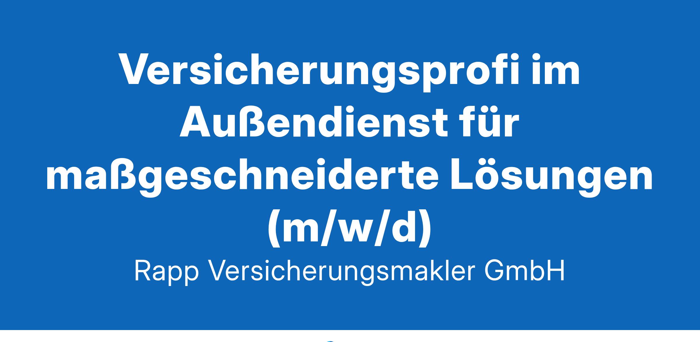 im Außendienst für den Vertrieb von Versicherungen (m/w/d)Dafür engagieren Sie sich:Betreuung, Beratung und Pflege bestehender Kundenverbindungen Akquise neuer Kundenbeziehungen Konzeption und Ausarbeitung von maßgeschneiderten Angeboten Vertrieb von Komposit-, Bürgschafts- und Vorsorgeprodukten Organisation und Durchführung von Informationsveranstaltungen Durchführung von Kundenpräsentationen, ggf. Teilnahme an MessenDas bringen Sie mit:Abgeschlossene Ausbildung zum Versicherungsfachmann, Versicherungskaufmann, Kaufmann für Versicherungen