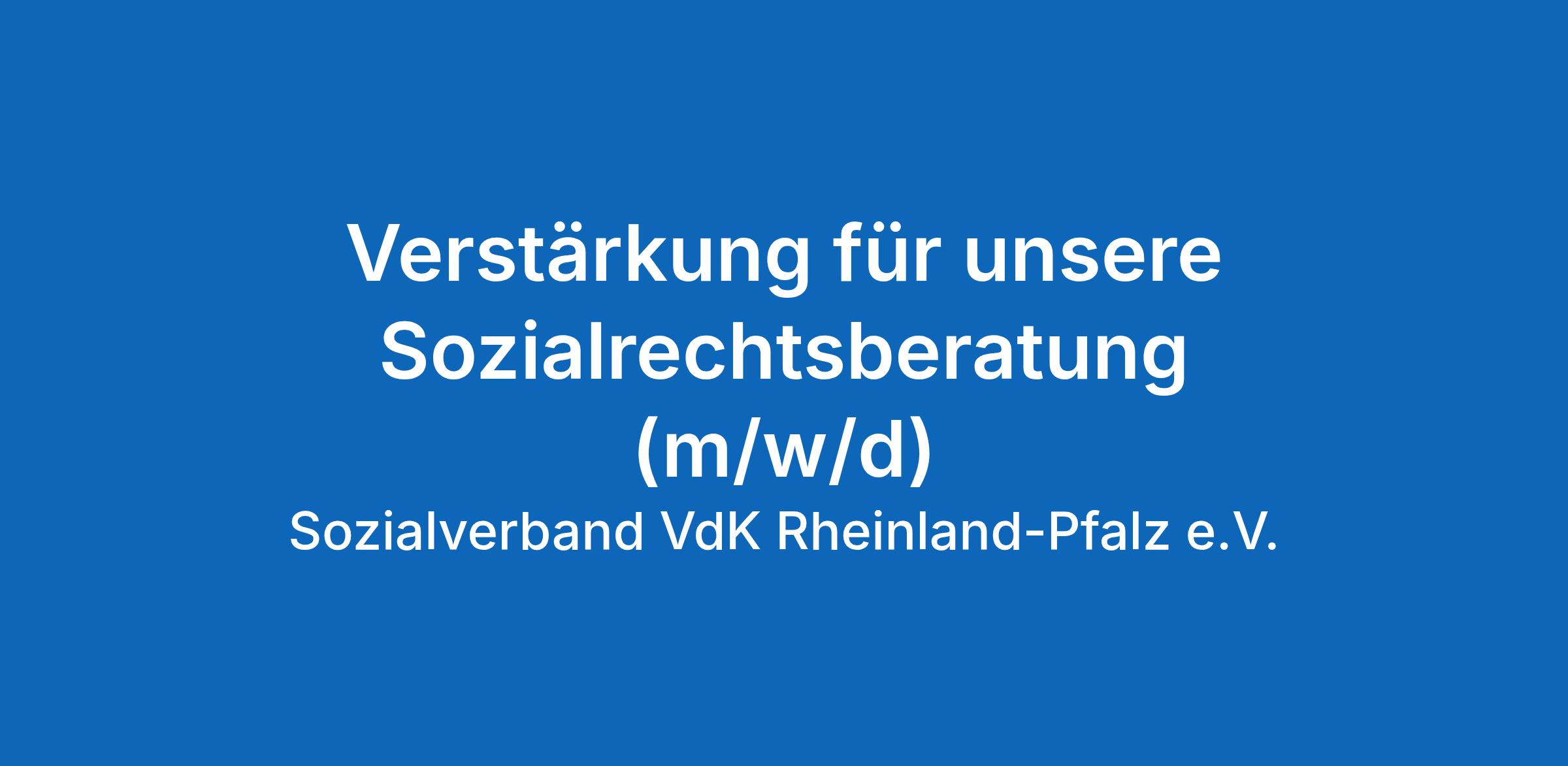 Mit über 230.000 Mitgliedern ist der Sozialverband VdK die größte Selbsthilfeorganisation in Rheinland-Pfalz. Wir prägen die politische Diskussion, unterstützen unsere Mitglieder professionell in sozialrechtlichen Angelegenheiten und stärken den gesellschaftlichen Zusammenhalt in Rheinland-Pfalz durch unsere ehrenamtlich Aktiven. Als Mitarbeiter:in im Sozialverband VdK Rheinland-Pfalz e.V. gehen Sie einer sinnstiftenden Tätigkeit nach, die Ihnen nicht nur ein gutes Gefühl gibt, sondern mit der Sie unsere Gesellschaft nachhaltig positiv verändern.