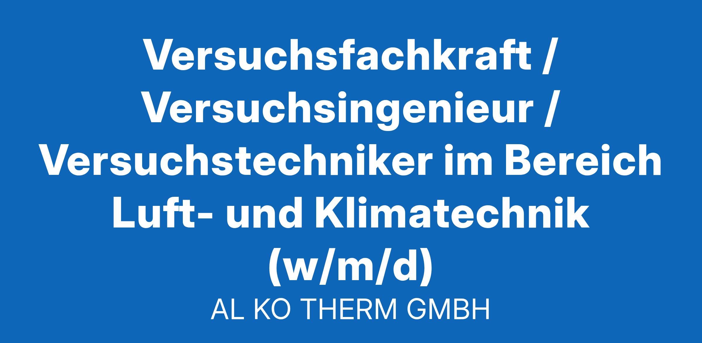 Versuchsfachkraft / Versuchsingenieur / Versuchstechniker im Bereich Luft- und Klimatechnik (w/m/d) Jettingen-Scheppach unbefristet Vollzeit Bei Trane Technologies und durch unsere Geschäftsbereiche, darunter Trane und Thermo King, entwickeln wir innovative Klimalösungen für Gebäude, Wohnhäuser und Verkehrsmittel, die das Machbare für eine nachhaltige Welt herausfordern. Wir sind ein Team, das es wagt, sich den Herausforderungen der Welt zu stellen und die Möglichkeiten zu sehen, die sich daraus ergeben. Wir glauben an eine bessere Zukunft, wenn wir anderen helfen und es unseren Mitarbeitern ermöglichen, bei der Arbeit und zu Hause erfolgreich zu sein. Wir gehen mutig voran. Als Marke von Trane Technologies, sind wir bei der AL-KO THERM GMBH die Spezialisten für die Herstellung und den Vertrieb von AL-KO Lüftungs- und Absauganlagen mit Sitz in Jettingen-Scheppach bei Augsburg. Die Unternehmensbereiche AL-KO Air Technology und AL-KO Extraction Technology entwickeln und produzieren mit rund 600 Beschäftigten in Deutschland maßgeschneiderte raumlufttechnische Anlagen sowie ein breites Spektrum an industriellen Absauganlagen für die verschiedensten Einsatzmöglichkeiten. Zur Verstärkung suchen wir Sie am Standort Jettingen-Scheppach als Versuchsfachkraft / Versuchsingenieur / Versuchstechniker im Bereich Luft- und Klimatechnik (w/m/d) Ihre Aufgaben: Eigenverantwortliche Planung, Aufbau, Koordination und Durchführung von Versuchen und Analysen in Abstimmung mit den Fachbereichen Erstellung von Versuchsspezifikationen Festlegung von Prüfbedingungen, der Prüfmethodik von Tests sowie der Mess- und Prüfmittel Erstellung von objektiven Dokumentationen der Untersuchungsergebnisse Aufbau von neuen Prüfständen und Versuchseinrichtungen Verantwortung der termingerechten Bereitstellung von Messergebnissen Mitwirken bei der konstruktiven Umsetzung von neuen Produkten und Bauteilen Mitwirken bei Werksabnahmen und Gerätetests Kalibrierung und Verwaltung der Messmittel des Versuchs in Zusammenarbeit mit dem Qualitätsmanagement Enge Zusammenarbeit mit den entsprechenden Fachbereichen Ihre Basis und Ihre Stärken: Abgeschlossene Berufsausbildung im Metall-/Elektrobereich mit Weiterbildung zum Meister/Techniker (w/m/d) Alternativ Studium als Bachelor, Master oder Ingenieur (w/m/d) Fundierte Kenntnisse in Mechanik, Metallbau sowie in der Blech- und Metallverarbeitung Kenntnisse in der Thermodynamik sowie Prüfaufbauten und Messtechnik Allgemein handwerkliches Geschick Weiterbildung zur Elektrofachkraft für festgelegte Tätigkeiten wäre von Vorteil Team- und Kommunikationsfähigkeit Selbstständige und kooperative Arbeitsweise sowie Belastbarkeit Sehr gute Deutschkenntnisse in Wort und Schrift Wir bieten Ihnen: AL-KO Seminarprogramm Aus- und Weiterbildung Betriebsarzt Familiäres Arbeitsklima Flexible Arbeitszeiten mit Gleitzeitkonto Internetnutzung Leistungsgerechte Bezahlung Mitarbeiterrabatte Parkplatz Subventionierte Kantine Vermögenswirksame Leistungen Arbeitskleidung Betriebliche Altersvorsorge Bikeleasing Flache Hierarchien Gute Verkehrsanbindung Kostenloser Wasserspender Mentorenprogramm Parkplatz Urlaubs- und Weihnachtsgeld Wir bieten eine wettbewerbsfähige Vergütung, sowie umfassende Leistungen und Programme, die unseren Mitarbeitern helfen, sowohl im beruflichen als auch im privaten Bereich zu wachsen. Wir sind stolz auf unsere Gewinner-Kultur, die im Kern integrativ und respektvoll ist. Wir teilen die Leidenschaft für den Dienst am Kunden, die Sorge um andere und die mutige Herausforderung, was für eine nachhaltige Welt möglich ist. Florian Böck Referent Personalwesen Fon: 08225/39-2568 AL-KO THERM GMBH alko-airtech.com Genau Ihr Profil? Bitte bewerben Sie sich online unter Angabe Ihrer Gehaltsvorstellung und Verfügbarkeit. Wir freuen uns auf Sie! AL-KO THERM GmbH Hauptstraße 248–250 89343 Jettingen-Scheppach alko-airtech.com