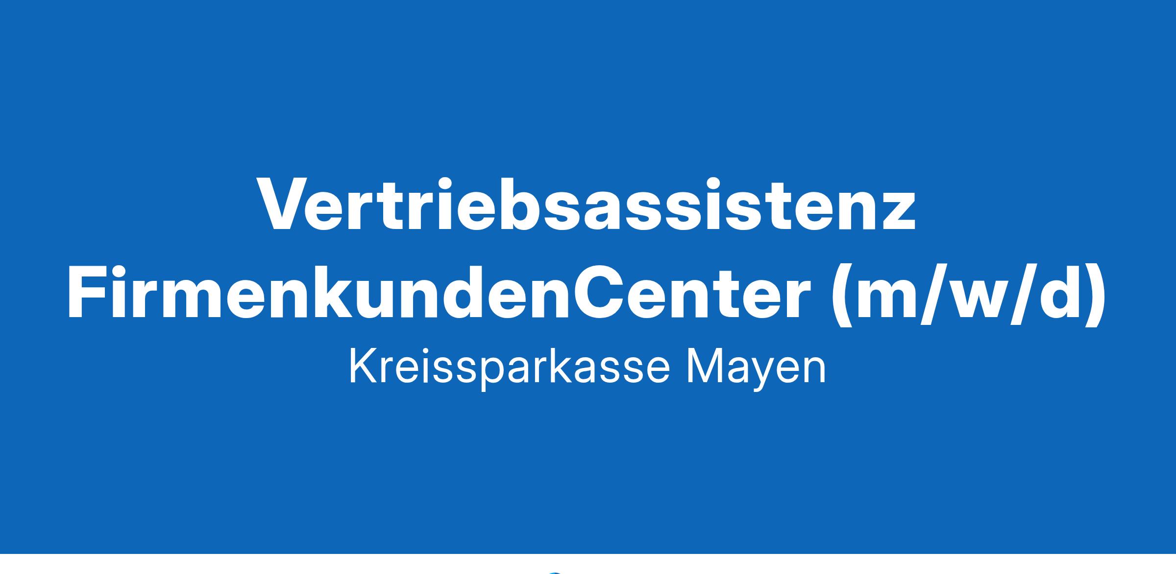 Seit über 165 Jahren sind wir, die Kreissparkasse Mayen, ein starker Finanzpartner für unsere Region zwischen Rhein-Mosel-Dreieck, Laacher See und Nürburgring. In Zahlen sind dies fast 400 Mitarbeiterinnen und Mitarbeiter und über 60.000 Kundinnen und Kunden. Für jeden einzelnen ist unser engagiertes Team mit Herzblut da, immer nah und persönlich, ob in der Filiale um die Ecke, im Internet oder mobil per App. Haben auch Sie ein Herz für das Bankwesen, unsere Region, zufriedene Kunden und ein engagiertes Team? Dann unterstützen Sie uns zum nächstmöglichen Zeitpunkt als Vertriebsassistenz (m/w/d) in unserem FirmenkundenCenter. Hier bringen Sie Ihr Herzblut ein: Im Tandem mit unseren Gewerbekundenbetreuern begleiten Sie unsere gewerbliche Kundschaft. Sie holen notwendige Unterlagen ein, sichten diese, bereiten beschlussrelevante Informationen auf und bilden die Schnittstelle zur Marktfolge. Sie unterstützen in der Vor- und Nachbereitung von Vertriebsaktionen und Kundenterminen. Sie helfen bei der Abwicklung von administrativen Tätigkeiten wie Terminplanung, Korrespondenz und Datenpflege. In Ergänzung zu unseren Gewerbekundenbetreuern sind Sie Ansprechpartner, nehmen die Wünsche unserer Kundinnen und Kunden am Telefon entgegen und bearbeiten selbstständig alle Anliegen, die in Ihrem Verantwortungsbereich liegen. Hierfür schlägt ihr Herz: Sie haben Ihre Ausbildung als Bankkaufmann / -frau, sowie die Weiterbildung zum Bankfachwirt / -wirtin oder eine vergleichbare Qualifizierung erfolgreich absolviert. Sie bringen idealerweise erste Erfahrung im Kreditgeschäft mit. Sie zeichnen sich durch ausgeprägte Service- und Kundenorientierung sowie hohe Kommunikationsstärke aus. Sie haben Spaß am telefonischen Kundenkontakt und zeigen ein ausgeprägtes Organisationsgeschick und die Fähigkeit Aufgaben zu priorisieren und zu koordinieren. Sie sind digital affin und arbeiten sich schnell in neue Prozesse und IT-Anwendungen ein. Sie bringen eine hohe Motivation mit, sich persönlich weiter zu bilden und zu entwickeln. Damit möchten wir Ihr Herz gewinnen: Einem sicheren und zukunftsfähigen Arbeitsplatz im öffentlichen Dienst mit einer herzlichen Atmosphäre und Events mit dem gesamten Sparkassenteam. Sie profitieren von flexiblen Arbeitszeiten, mobilem Arbeiten, 32 Urlaubstagen und Bausteinen zum Betrieblichen Gesundheitsmanagement. Gerne nutzen Sie unser Angebot des Fahrrad-Leasing über JOBRAD. In Ihren Ruhestand investieren wir mit einer vollfinanzierten Zusatzversorgungskasse und einem Zuschuss zu Ihrer privaten Altersvorsorge. Bei Ihrer Einarbeitung und Weiterentwicklung unterstützen wir Sie ihre Kollegen der Personalentwicklung individuell. Ist der Funke bei Ihnen übergesprungen? Dann freuen wir uns über Ihre Bewerbung! Für Rückfragen zur Stelle steht Ihnen Janoz Krizaj, Teamleiter FKC Bereich Mittelstand telefonisch unter 02651 876108 gerne zur Verfügung. Sie haben Fragen zum Bewerbungsverfahren? Dann rufen Sie gerne die Personalentwicklung – Sabine Barth (02651 876140) - an.