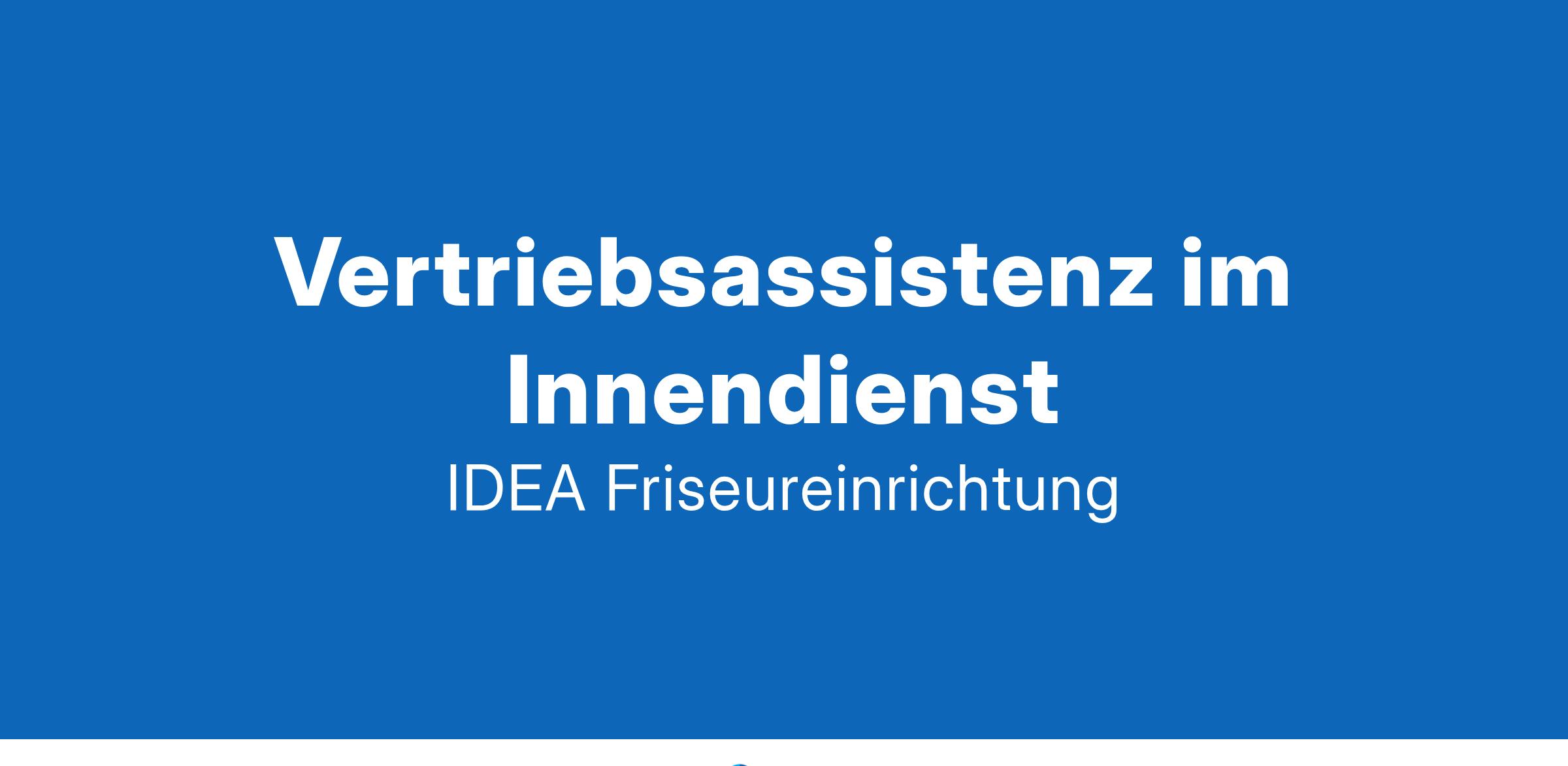 DAS SIND WIR Im Bereich hochwertiger, designorientierter Einrichtung von Friseur- und Beautyinstituten sind wir einer der führenden Anbieter. Als Familienunternehmen ist IDEA seit mehr als 30 Jahren erfolgreich tätig. WAS WIR SUCHEN Zur Verstärkung unseres Teams suchen wir für unseren Showroom in unserer Unternehmenszentrale in Essen eine/n Bürokaufmann / -frau als Vertriebsassistenz Innendienst